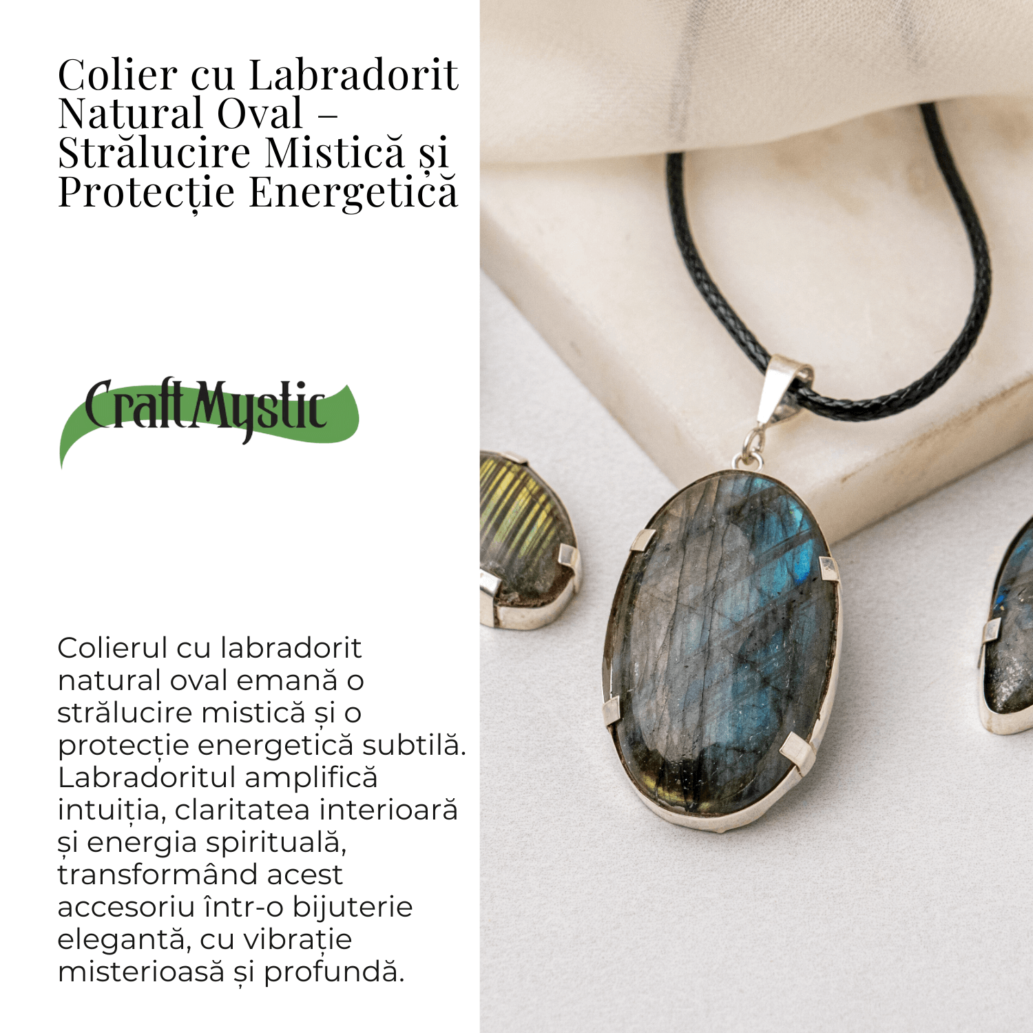 Labradoritul iti aminteste ca magia este mereu prezenta — trebuie doar sa deschizi ochii sufletului pentru a o vedea.