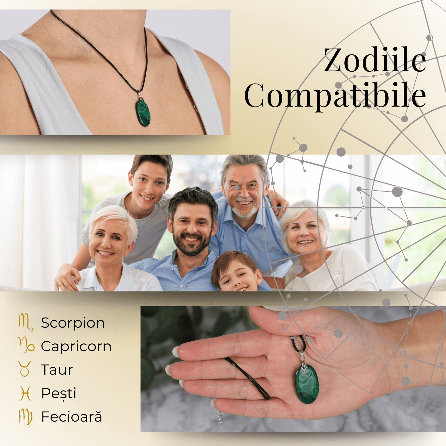 Zodiile Compatibile cu Malachitul: Este o piatră puternică pentru Scorpion, Capricorn și Taur. Malachitul rezonă cu energia transformării și creșterii personale, fiind ideal pentru cei născuți sub aceste zodii.