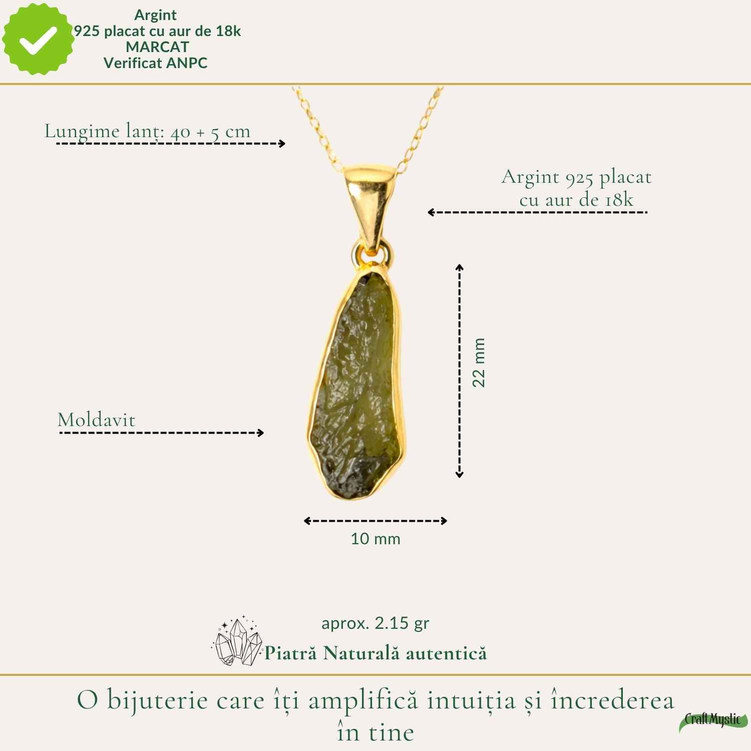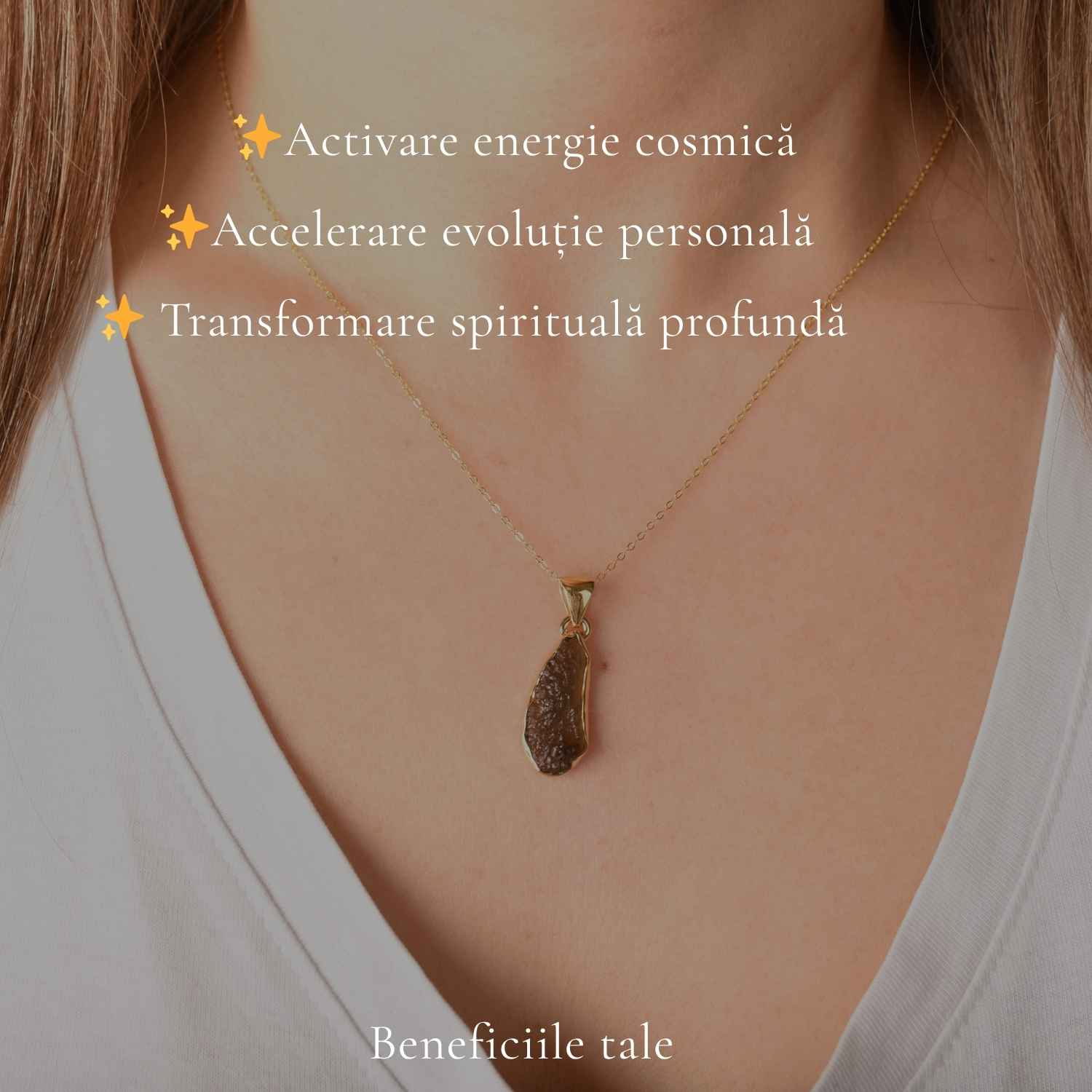 Un colier cu moldavit brut, cu formă alungită și energie intensă, creat pentru momentele în care vrei claritate și schimbare. Ușor și autentic, îl porți ca pe un simbol al transformării tale interioare.