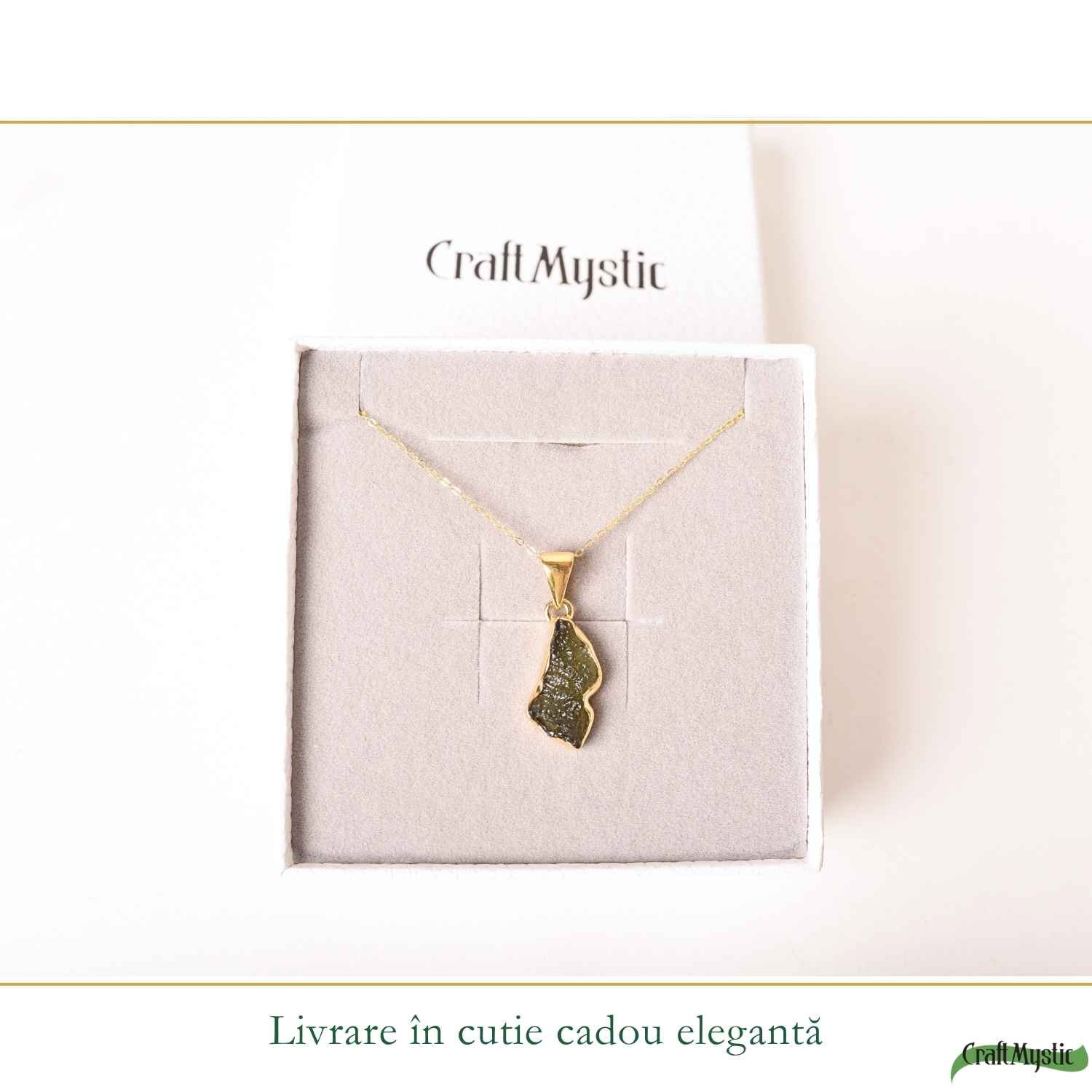 Un colier cu moldavit brut, cu formă alungită și energie puternică, creat pentru momentele în care vrei să faci o schimbare reală. Ușor și natural, îl porți ca pe un simbol al clarității și transformării tale.