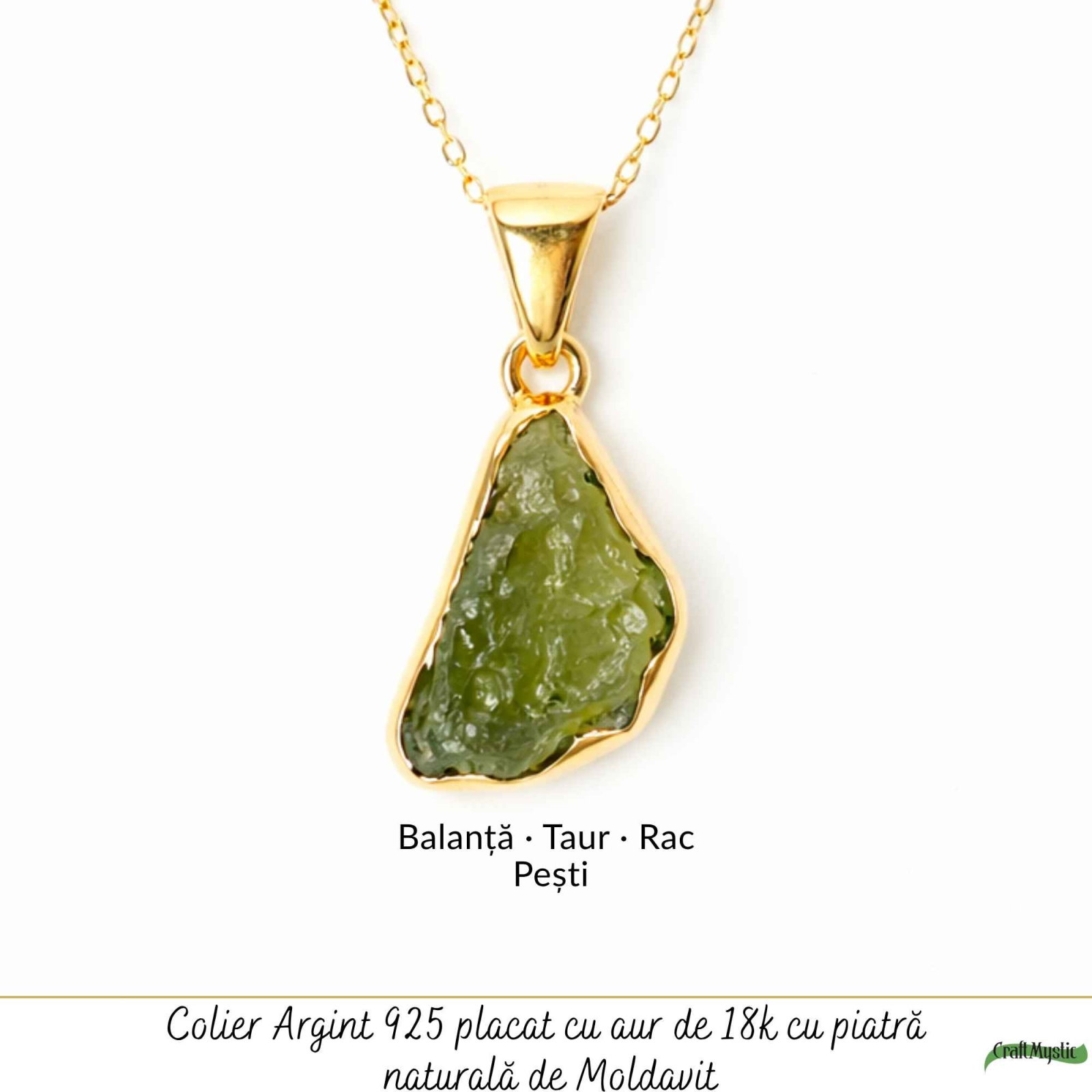 Un colier cu moldavit brut, cu formă naturală și energie intensă, creat pentru momentele în care simți că e timpul să faci un pas înainte. Ușor și plin de personalitate, îl porți ca pe un simbol al transformării și clarității interioare.