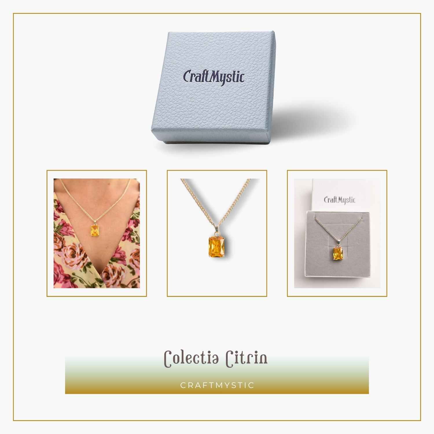 Colierul cu pandantiv din citrin natural simbolizează prosperitatea, succesul și energia pozitivă. Citrinul, cu nuanțele sale calde și luminoase, este cunoscut pentru capacitatea sa de a aduce lumină și bucurie în viața purtătorului, eliminând energiile negative și atrăgând norocul. Acest colier este mai mult decât un simplu accesoriu; este un talisman al abundenței și clarității.
