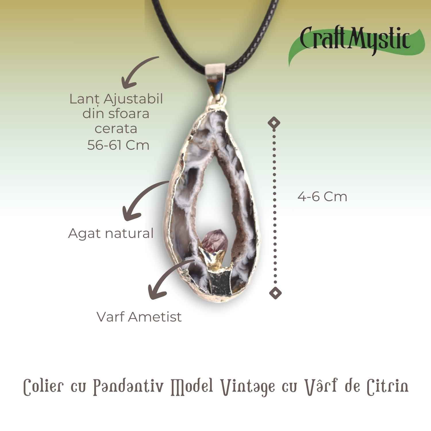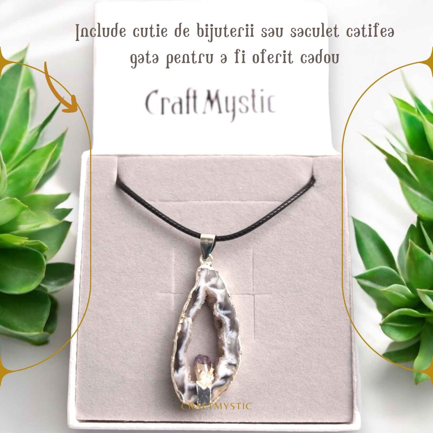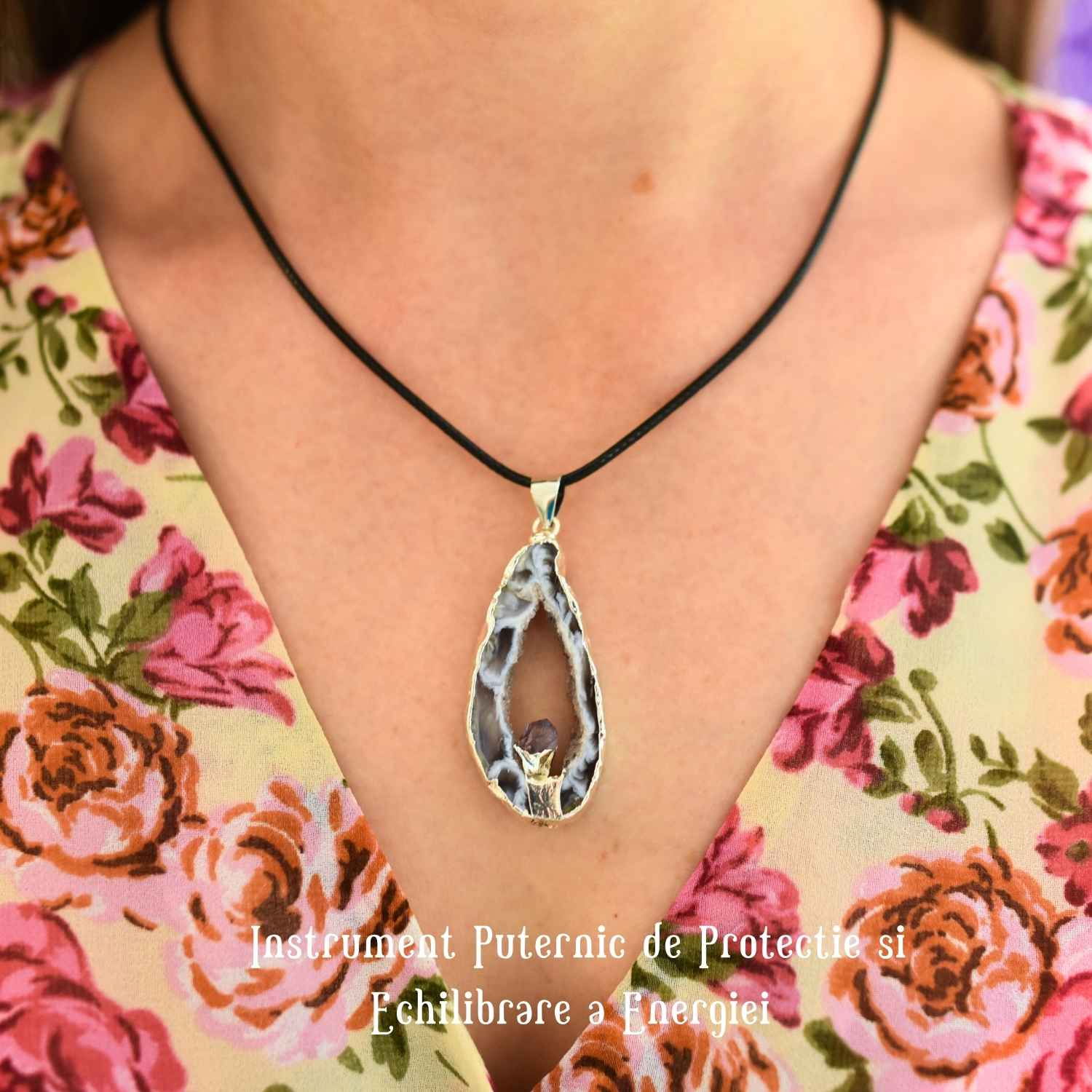 Adaugă acum Colierul cu Pandantiv din Agat și Ametist în colecția ta și bucură-te de protecție, claritate și echilibru spiritual!