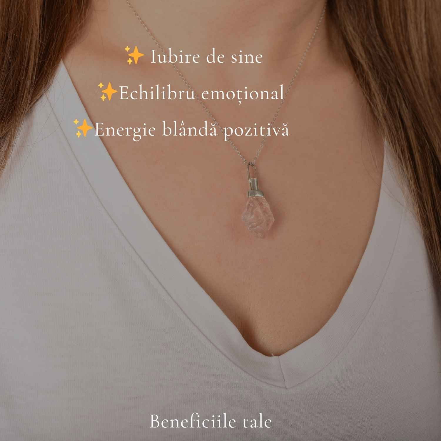Un colier din argint 925 cu cuart roz brut, păstrat în forma sa naturală, pentru o energie autentică și blândă. Ușor și discret, îl vei purta ca pe un simbol al iubirii de sine și al echilibrului interior