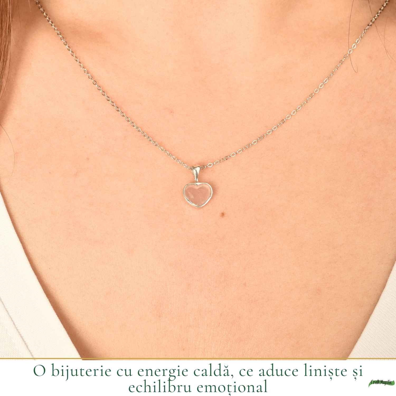 Acest colier cu inimă din cuart roz este exact acel gest simplu, dar profund.