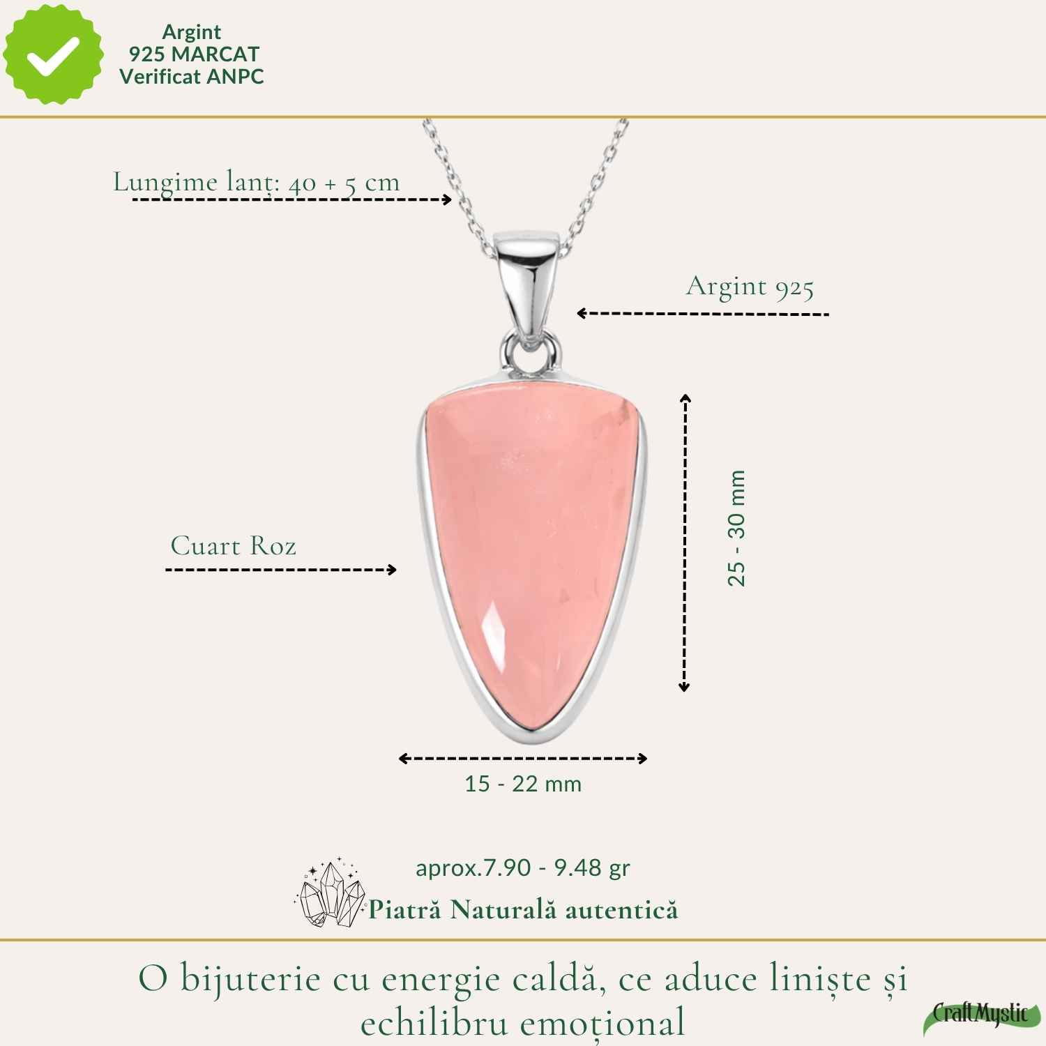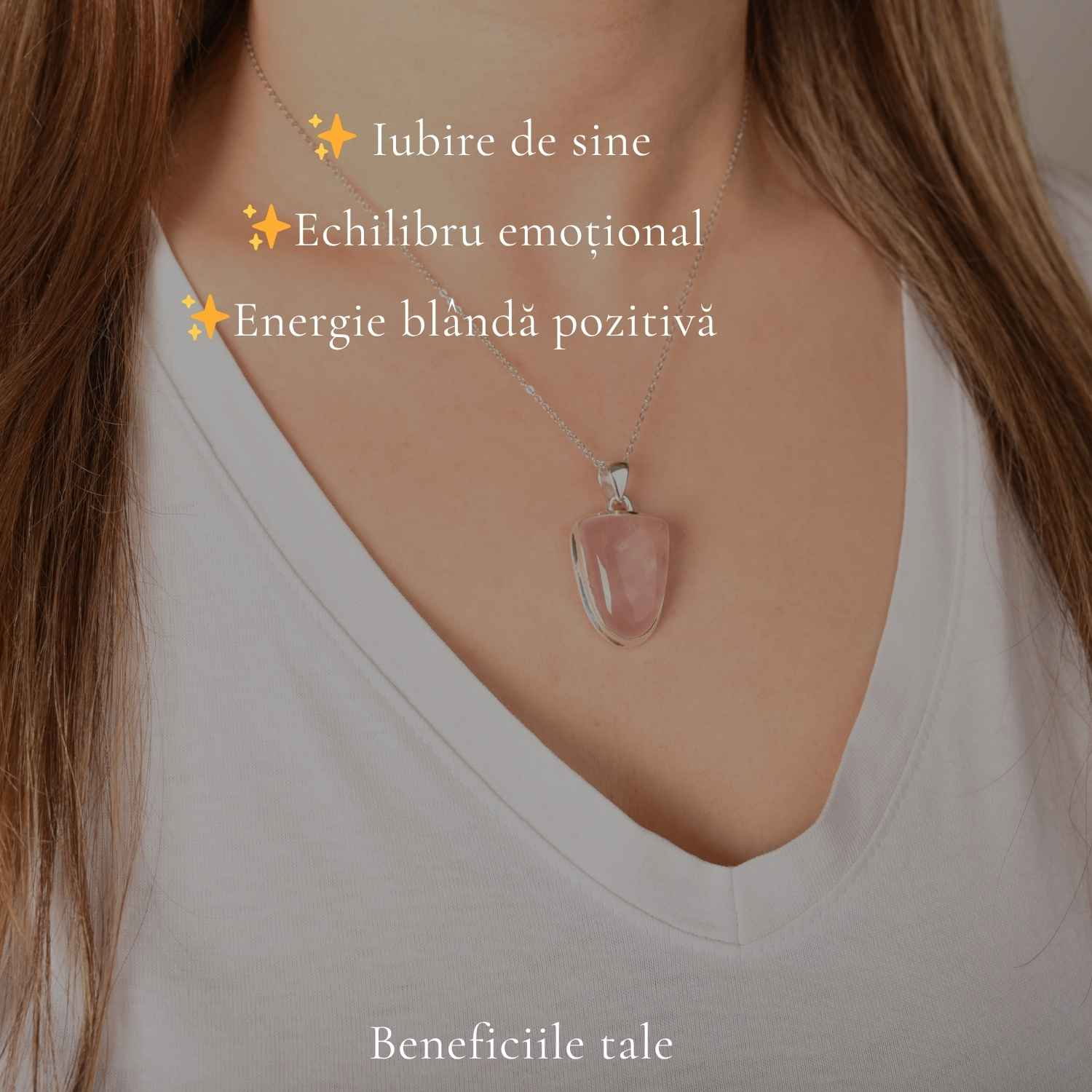 Un colier delicat din argint 925 cu cuart roz natural în formă neregulată, creat pentru a-ți aduce mai multă blândețe și iubire de sine în fiecare zi. Ușor și plăcut de purtat, devine acel detaliu subtil care îți completează starea, nu doar ținuta.