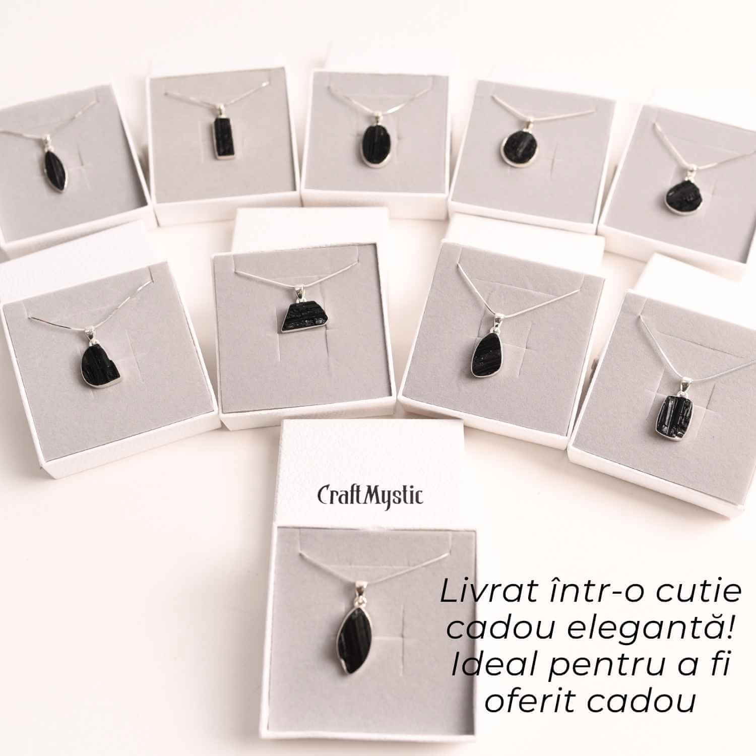- Alege pandantivul dorit – Selectează varianta de pandantiv cu turmalină neagră care ți se potrivește, având la dispoziție diferite forme și greutăți.