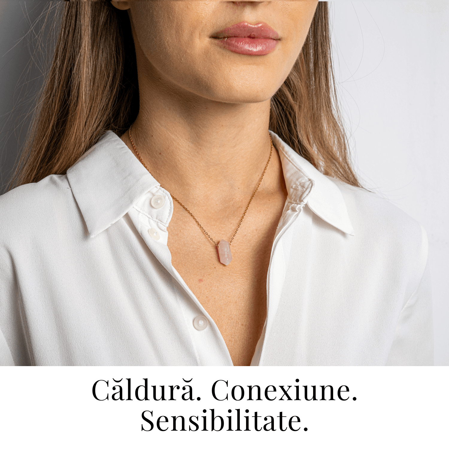 Poartă acest colier ca pe un talisman al iubirii și armoniei. Cu fiecare respirație, cuartul roz îți deschide inima și îți aduce liniște, frumusețe subtilă și conexiune autentică cu tine însăți.