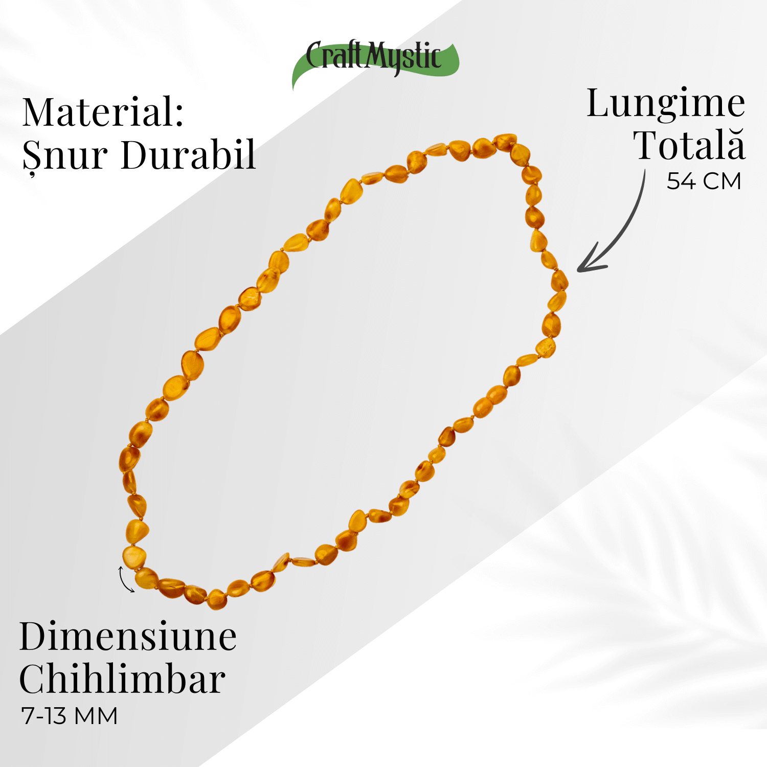 • Dimensiune chihlimbar: 7–13 mm (forma neregulată, organică)