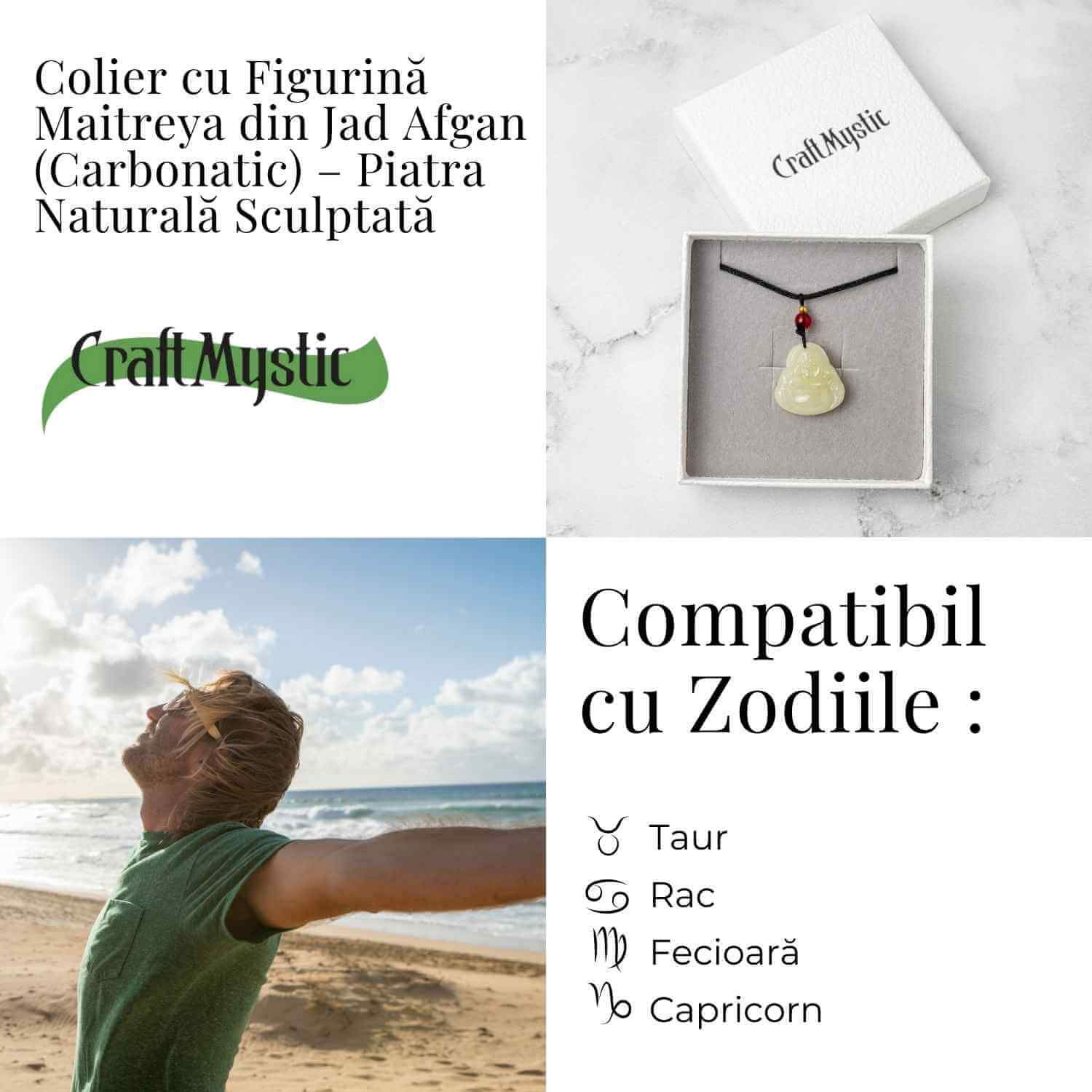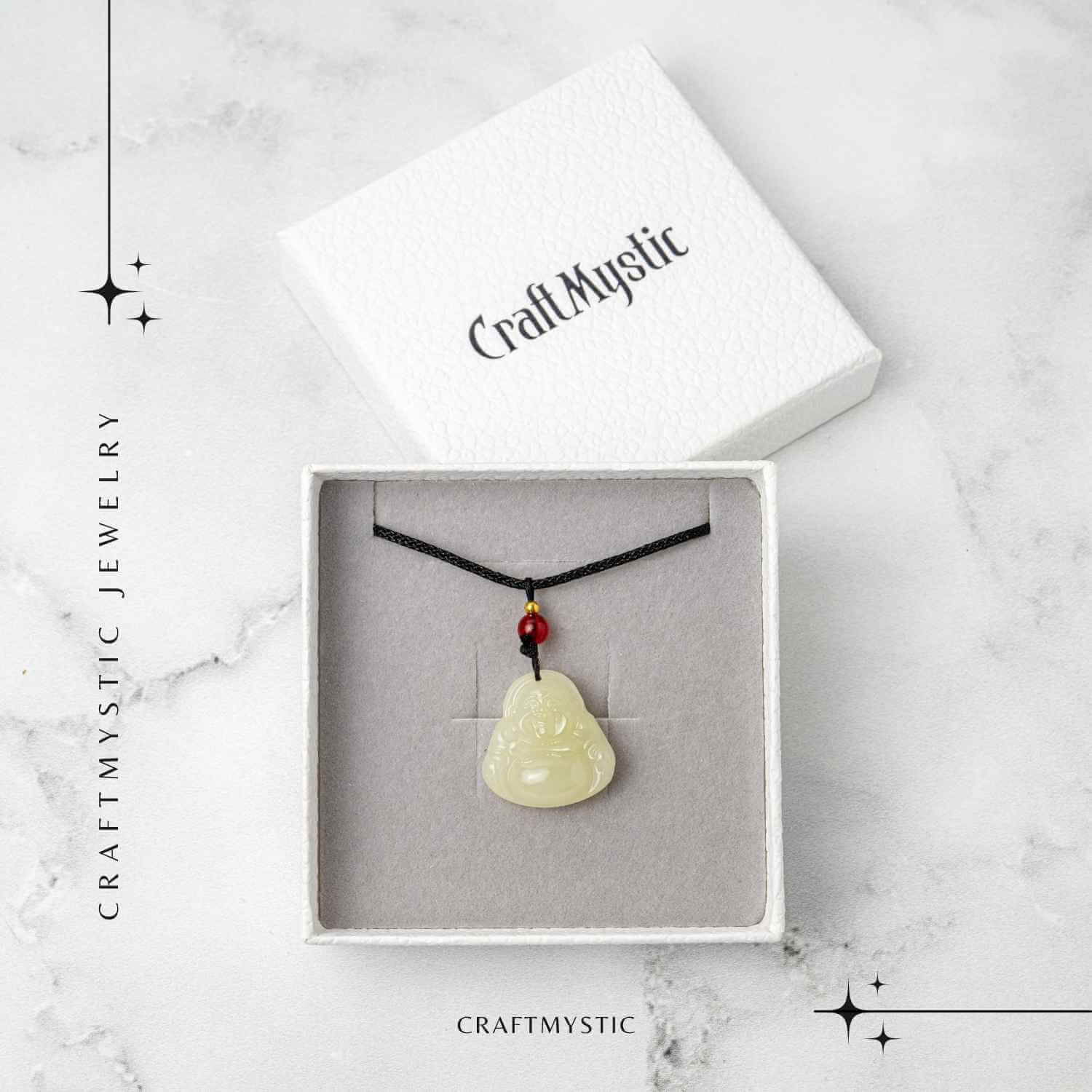 Acest colier cu pandantiv Buddha Maitreya sculptat in jad afgan natural aduce o energie profunda de liniste, bucurie si protectie. Buddha Maitreya simbolizeaza fericirea, prosperitatea si compasiunea universala, fiind considerat aducator de noroc si bunastare. Jadul afgan este piatra armoniei si a stabilitatii, purtat din vechime pentru a proteja purtatorul de energii negative si pentru a atrage intelepciune si echilibru interior.