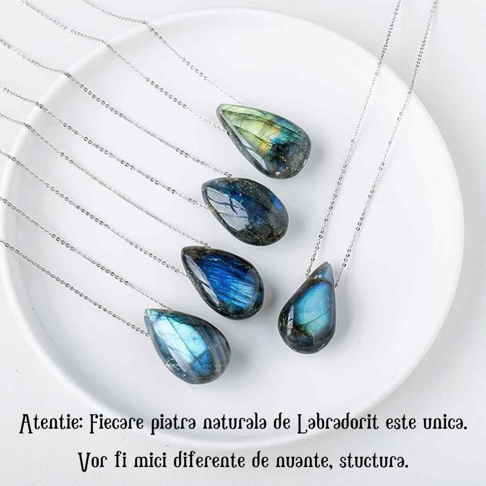 La achiziționarea acestui pandantiv, obțineți nu doar o bijuterie, ci o piesă unică de labradorit, garantând că nu există două astfel de cristale identice în lume.