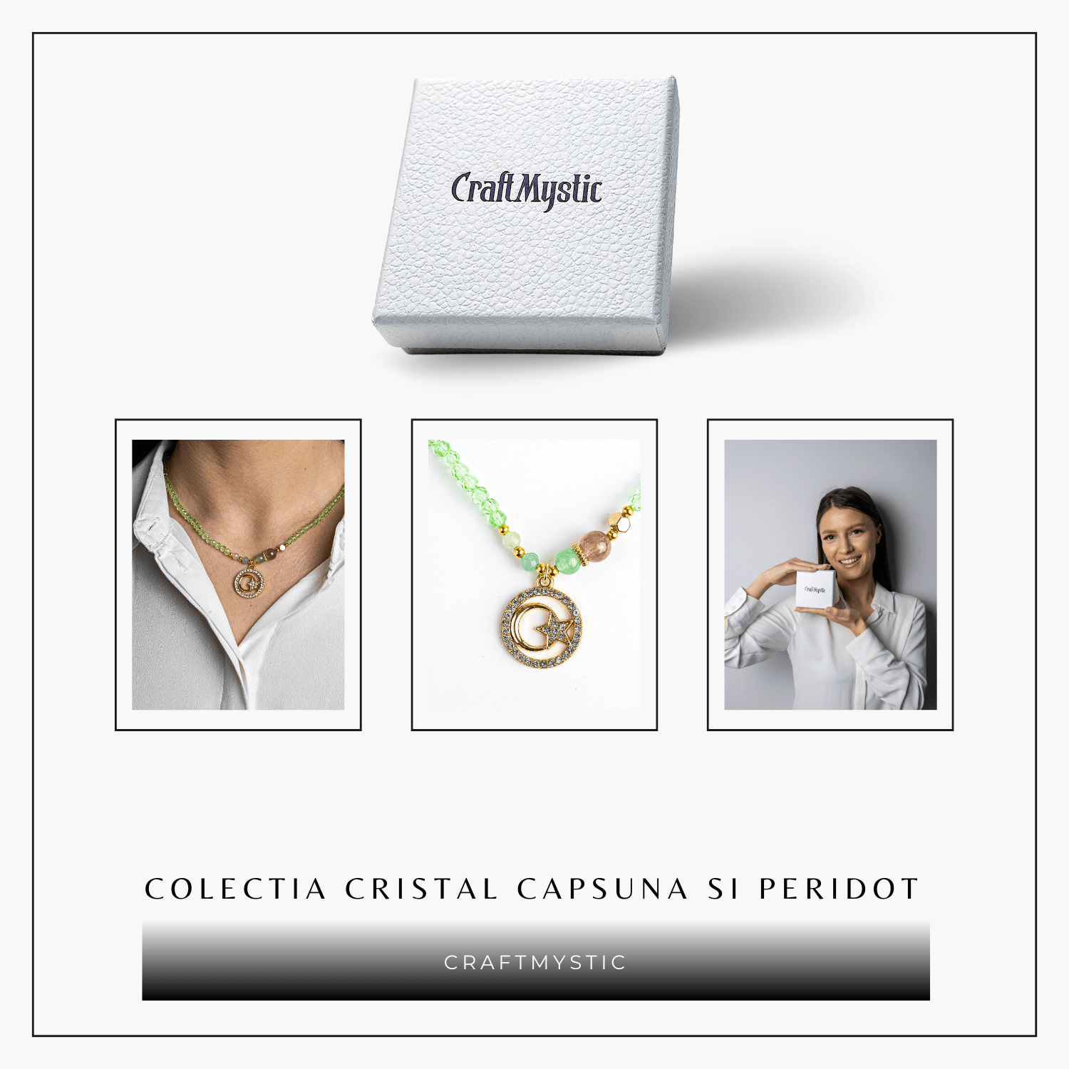 Bijuteriile vin în săculeț de satin sau în cutie CraftMystic, pregătite pentru cadou. Produsele decorative sunt protejate cu folie cu bule; unele includ cutii cadou.