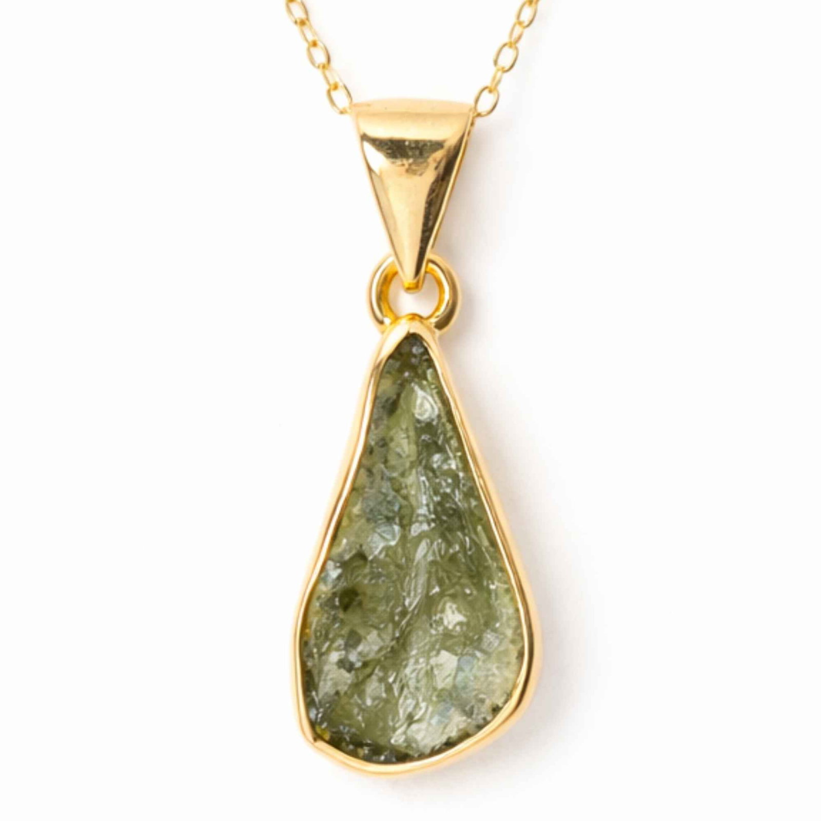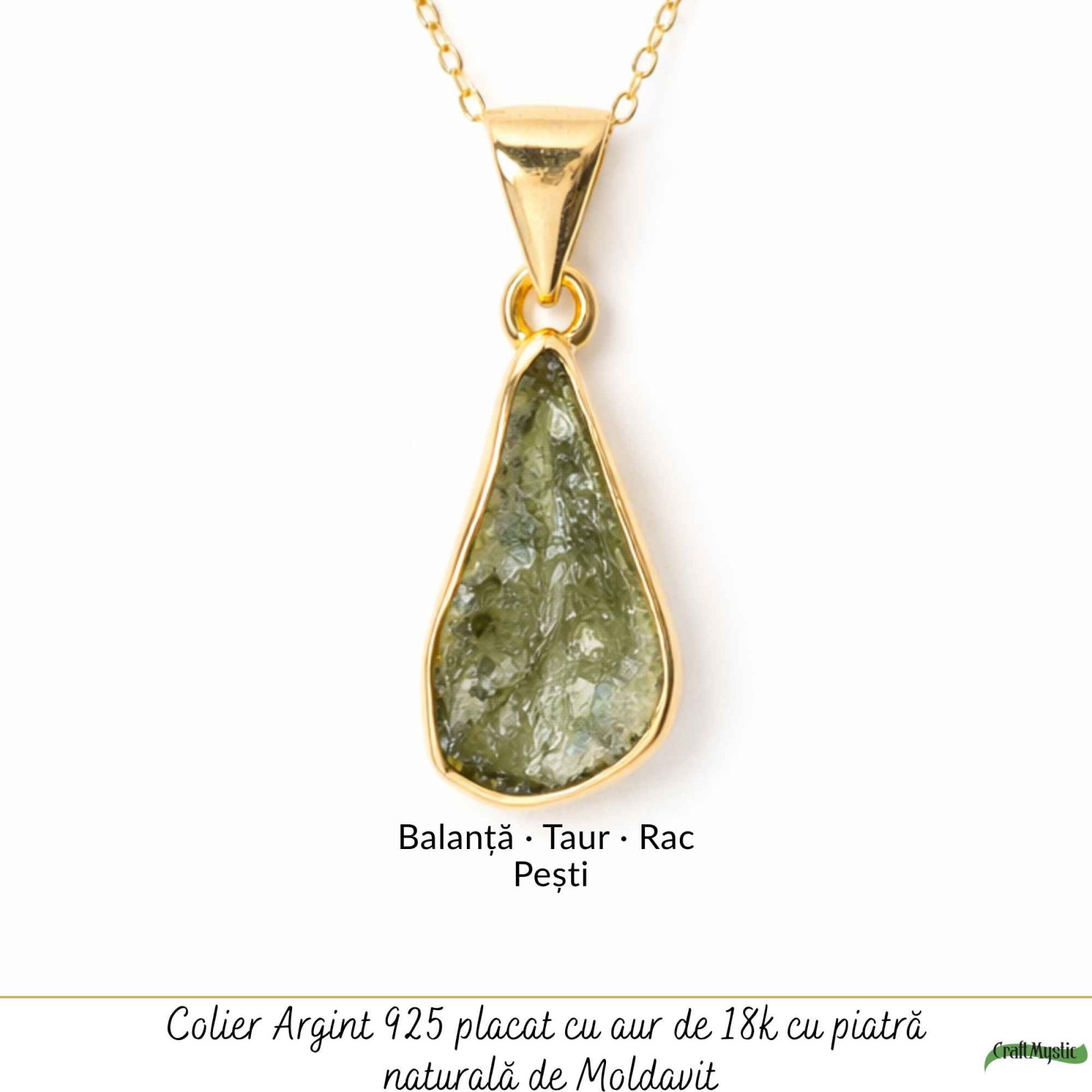 Un colier delicat cu moldavit brut, o piatră rară de origine cosmică, cu formă alungită și energie intensă. Ușor de purtat, devine talismanul tău pentru claritate, curaj și transformare interioară.