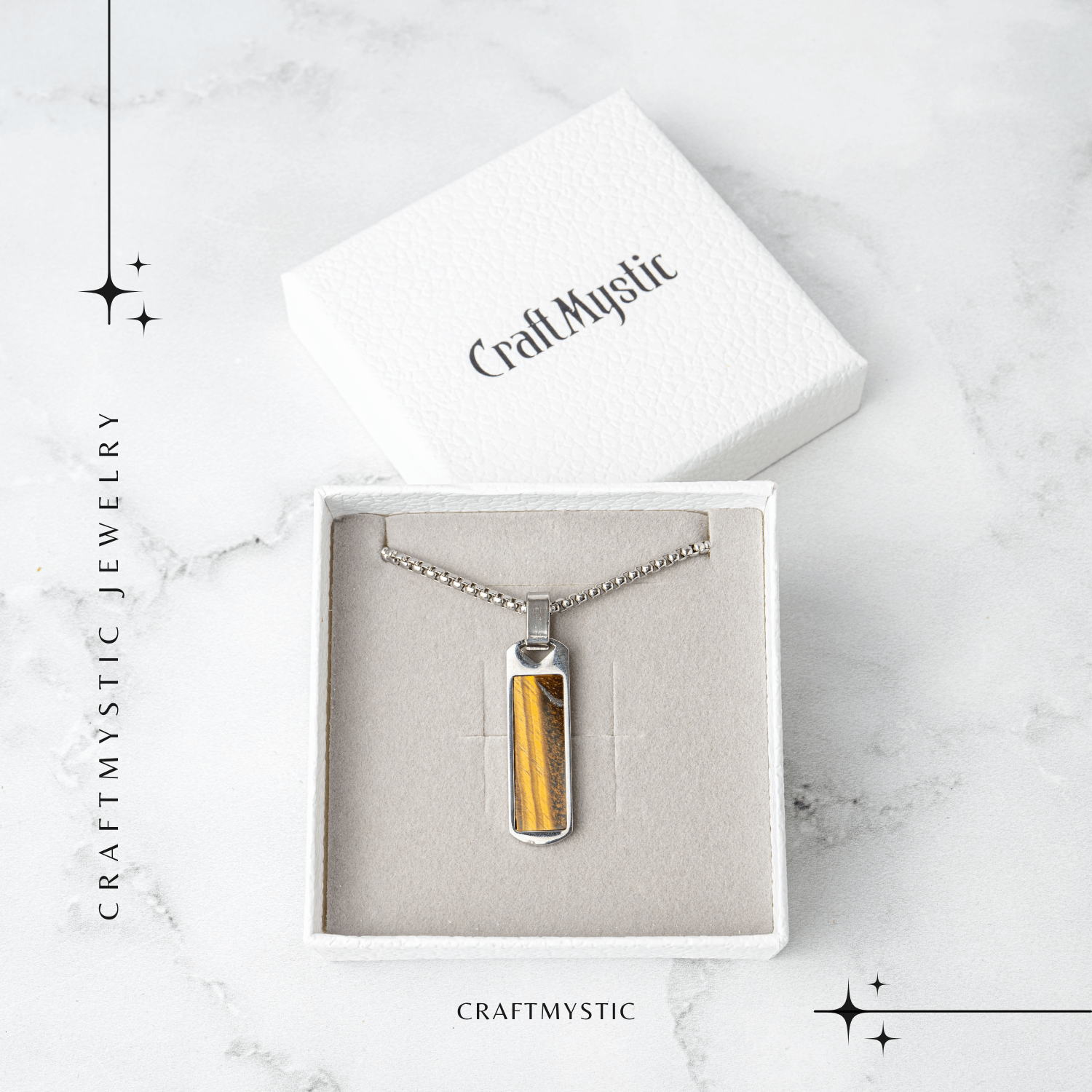 Un pandantiv dreptunghiular cu Ochi de Tigru natural, simbol al forței interioare și al protecției energetice. Forma dreptunghiului evocă stabilitatea și echilibrul, iar piatra ochi de tigru, cu nuanțele sale aurii și maronii, poartă energia curajului, a încrederii și a determinării. Împreună, creează o bijuterie ce inspiră putere și siguranță în orice moment.