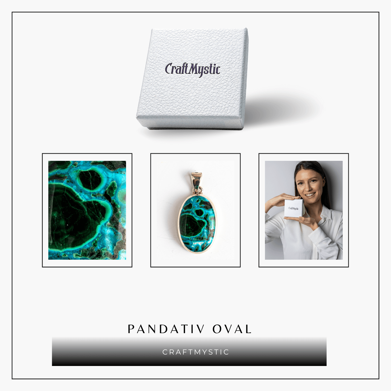 Pietre naturale: Malachit și Crisocola – pot avea forme ușor diferite (rotund, oval, triunghiular, pătrat)