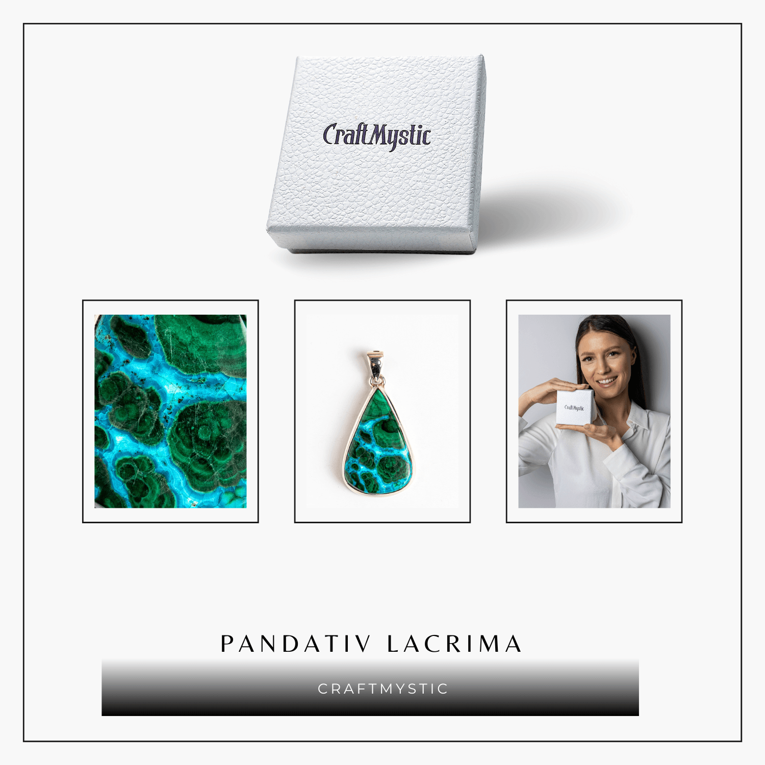 Pietre naturale: Malachit și Crisocola – pot avea forme ușor diferite (rotund, oval, triunghiular, pătrat)