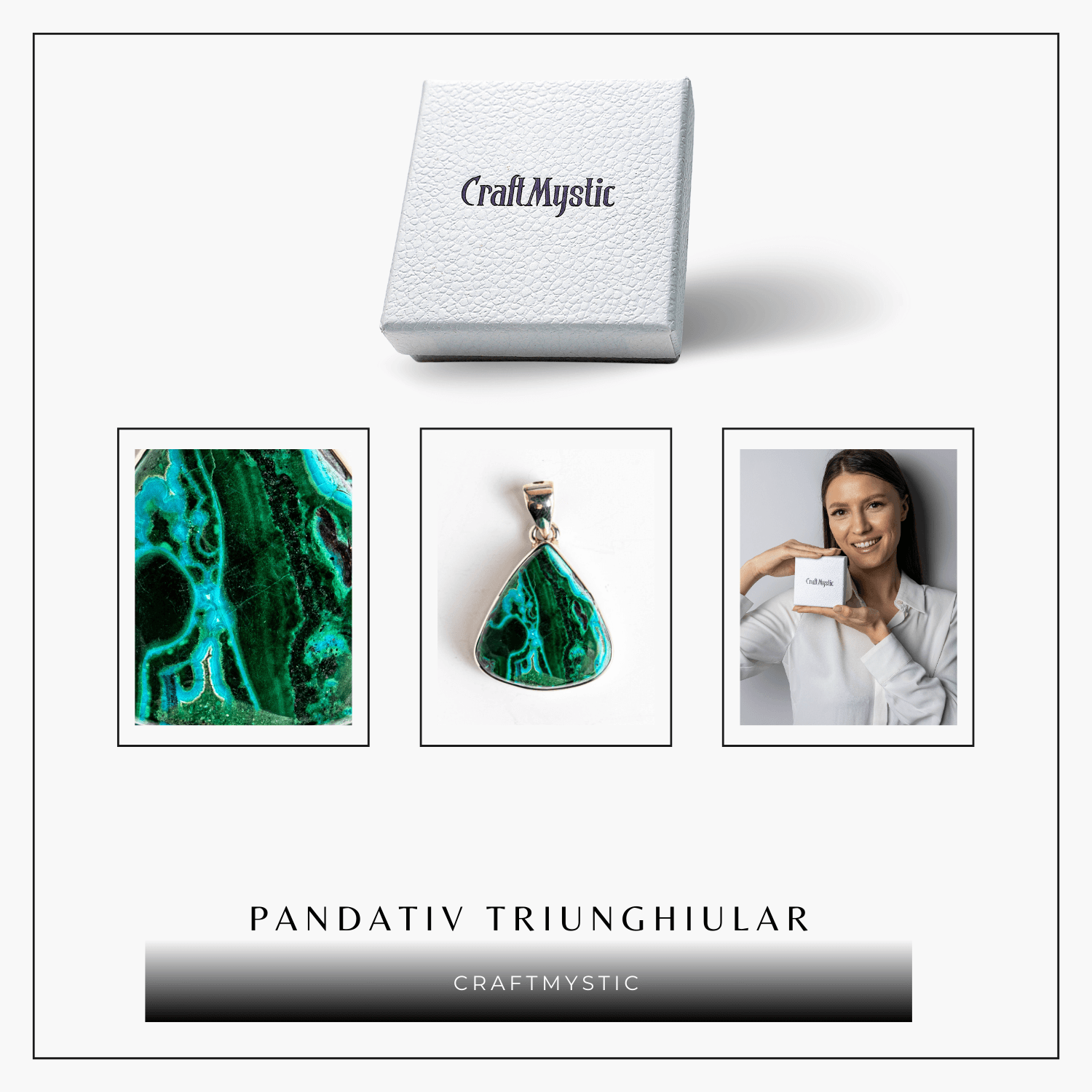 Pietre naturale: Malachit și Crisocola – pot avea forme ușor diferite (rotund, oval, triunghiular, pătrat)
