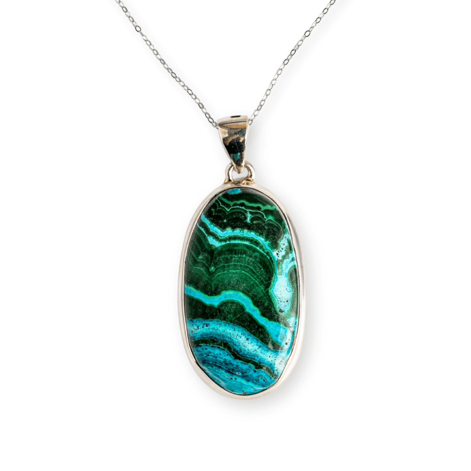 Colier protectie si echilibru emotional – Malachit si Crisocola montura Argint 925 13.19 gr