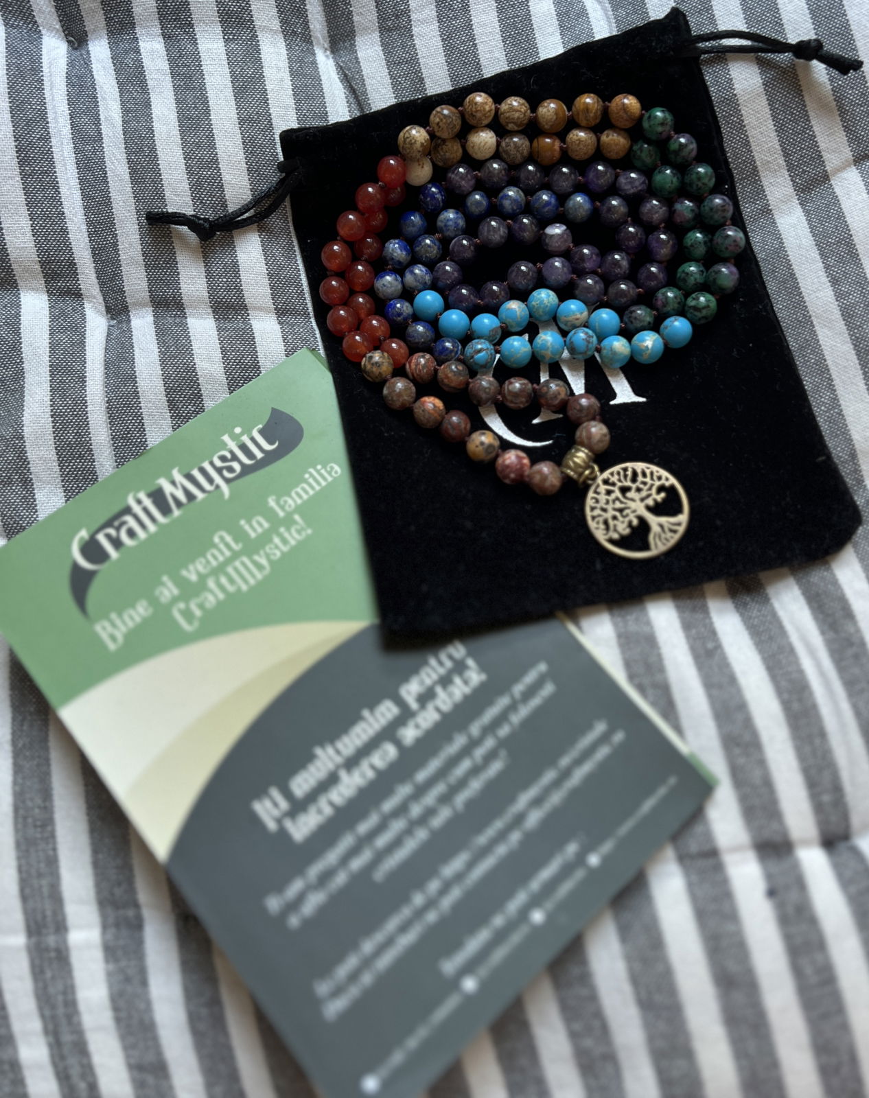 Descoperă armonia și echilibrul cu acest colier mala chakra, care îmbină eleganța și spiritualitatea într-un accesoriu unic.