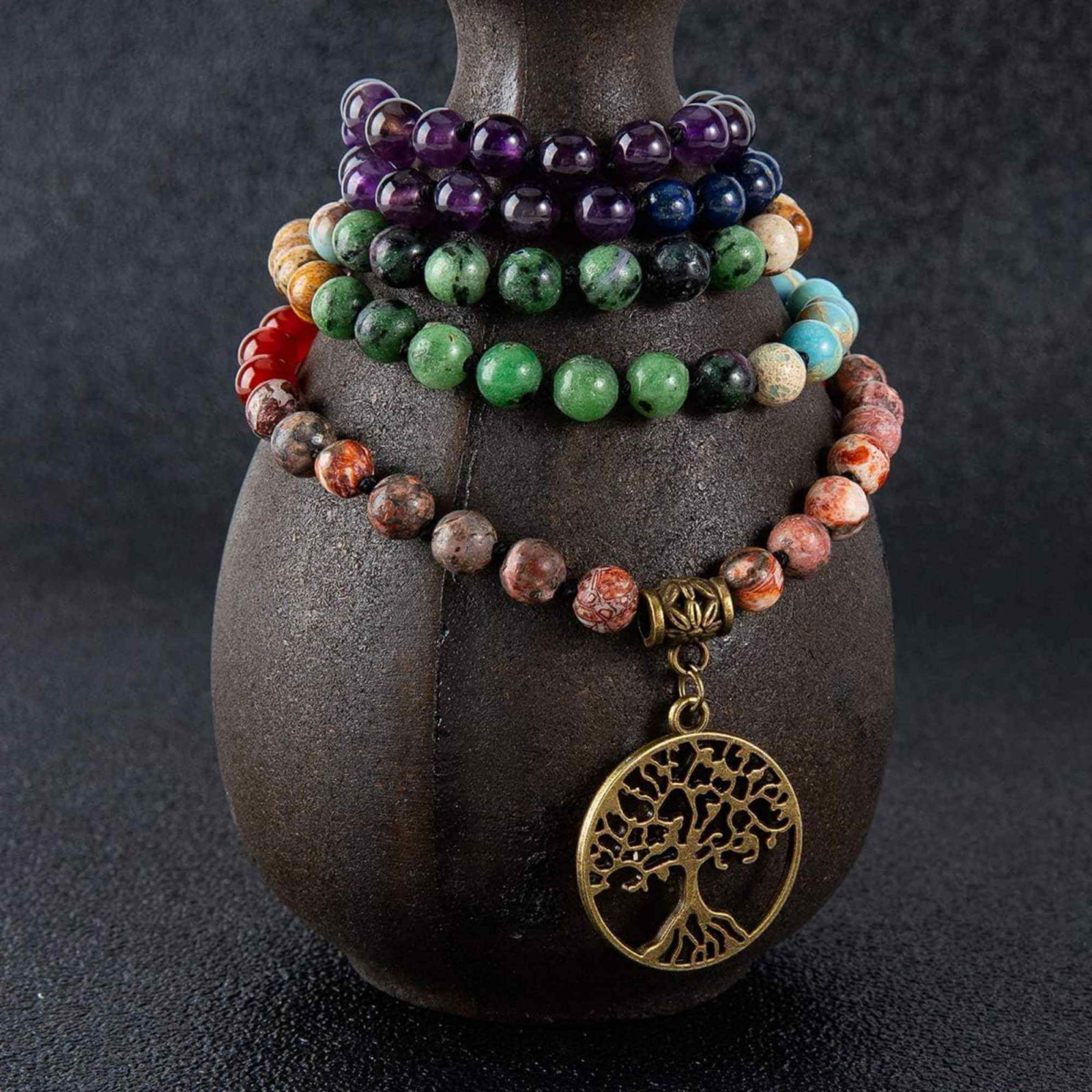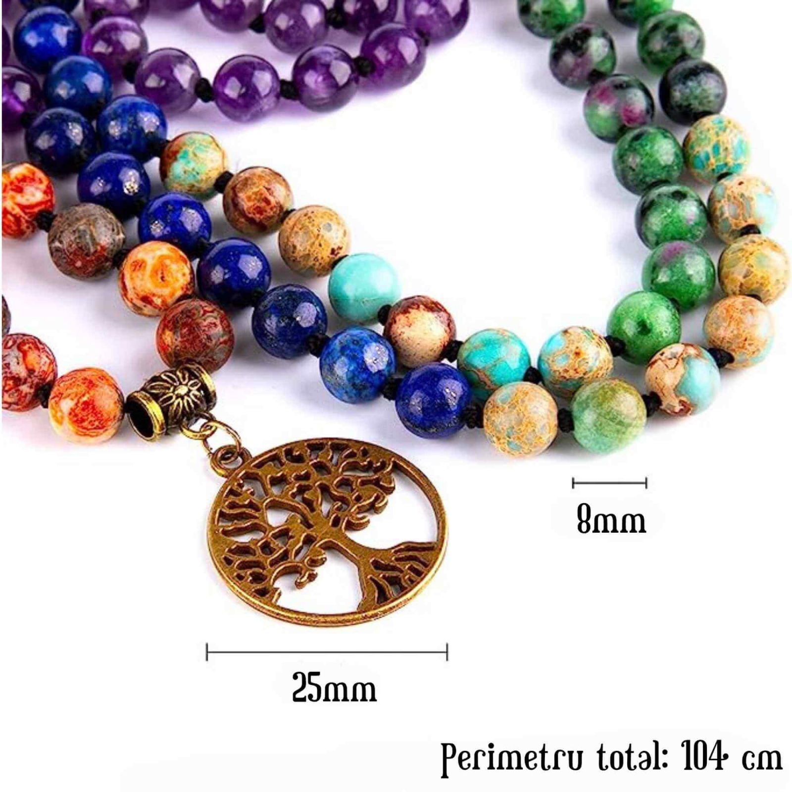 Colier Mala realizat manual cu dubla utilizare si 108 margele naturale semipretioase 7 chakre - Pentru Yoga, Meditatie