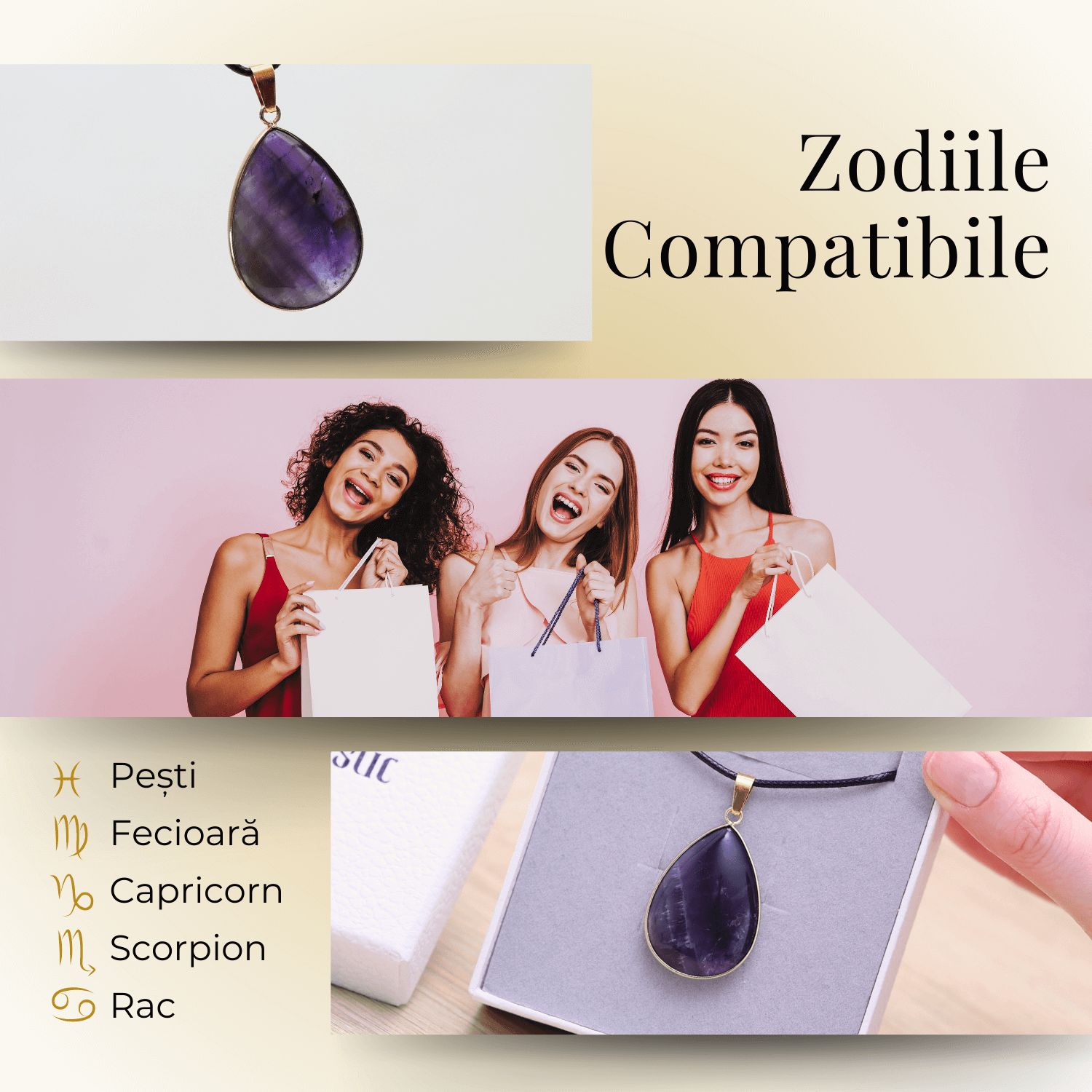 - Compatibilitate Zodiacala: Ametistul este considerat benefic pentru zodiile Pesti, Varsator si Capricorn, dar este potrivit pentru oricine apreciaza frumusetea sa.