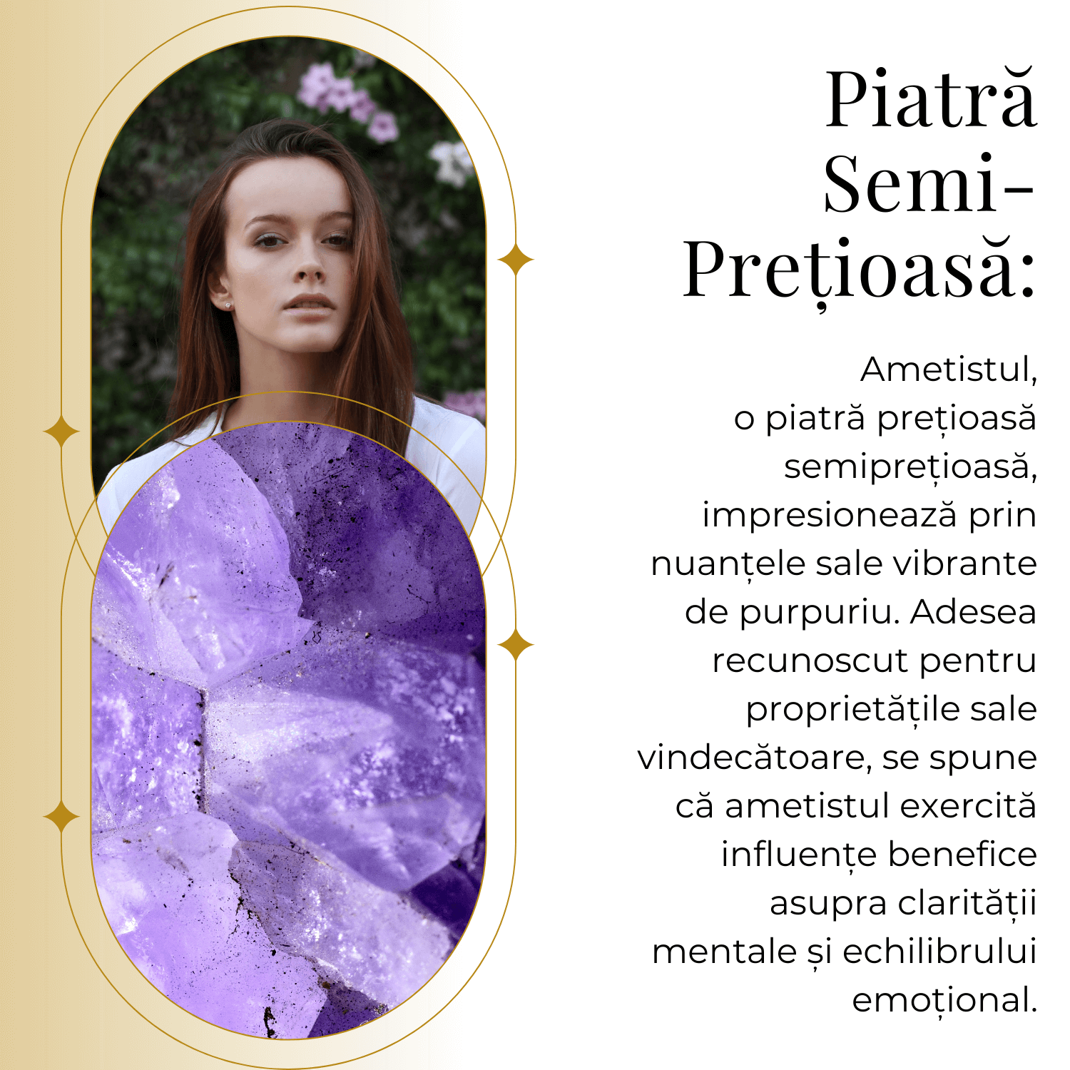 - Beneficiile Ametistului: Ametistul este cunoscut pentru proprietatile sale calmante si relaxante, fiind ideal pentru imbunatatirea claritatii mentale si a echilibrului emotional.