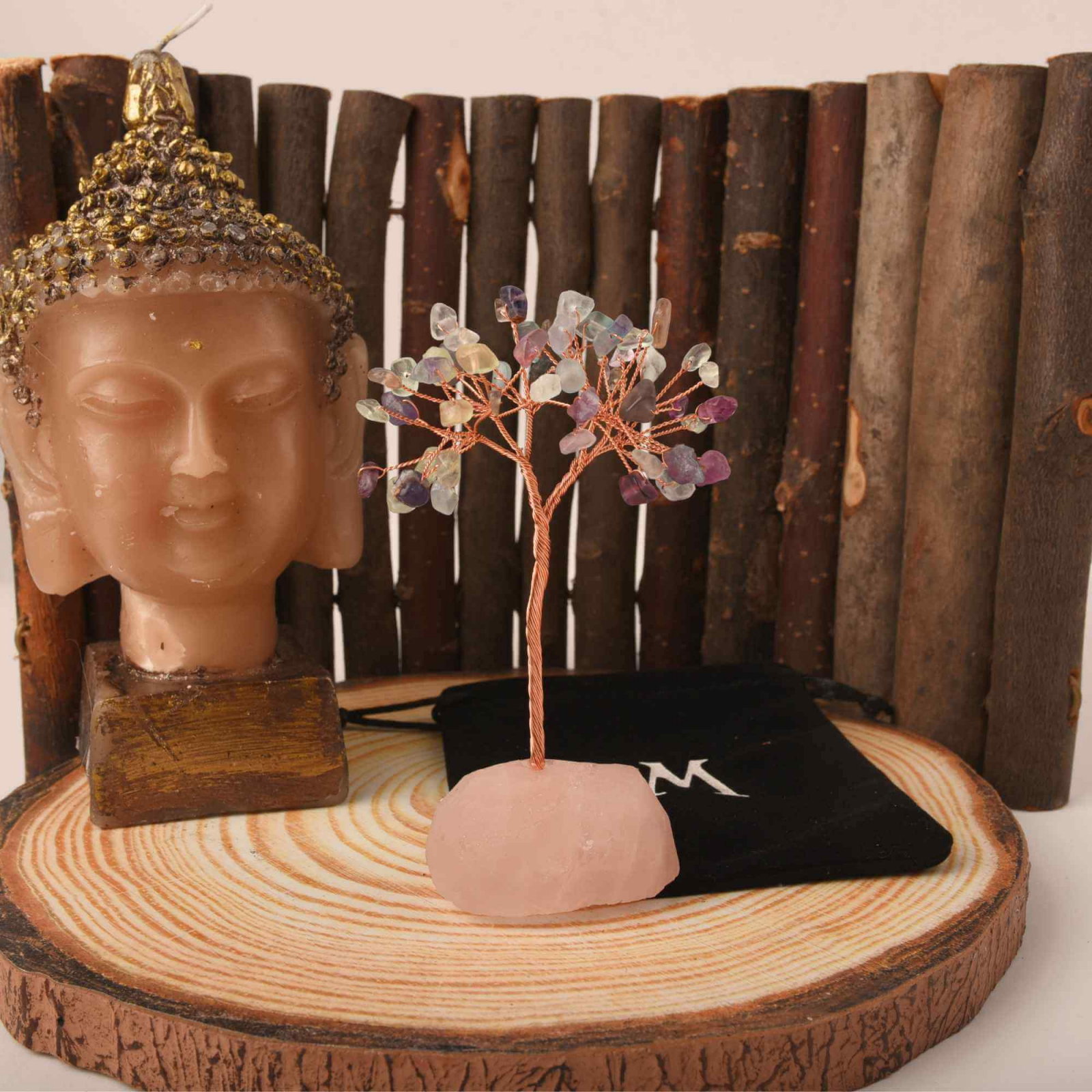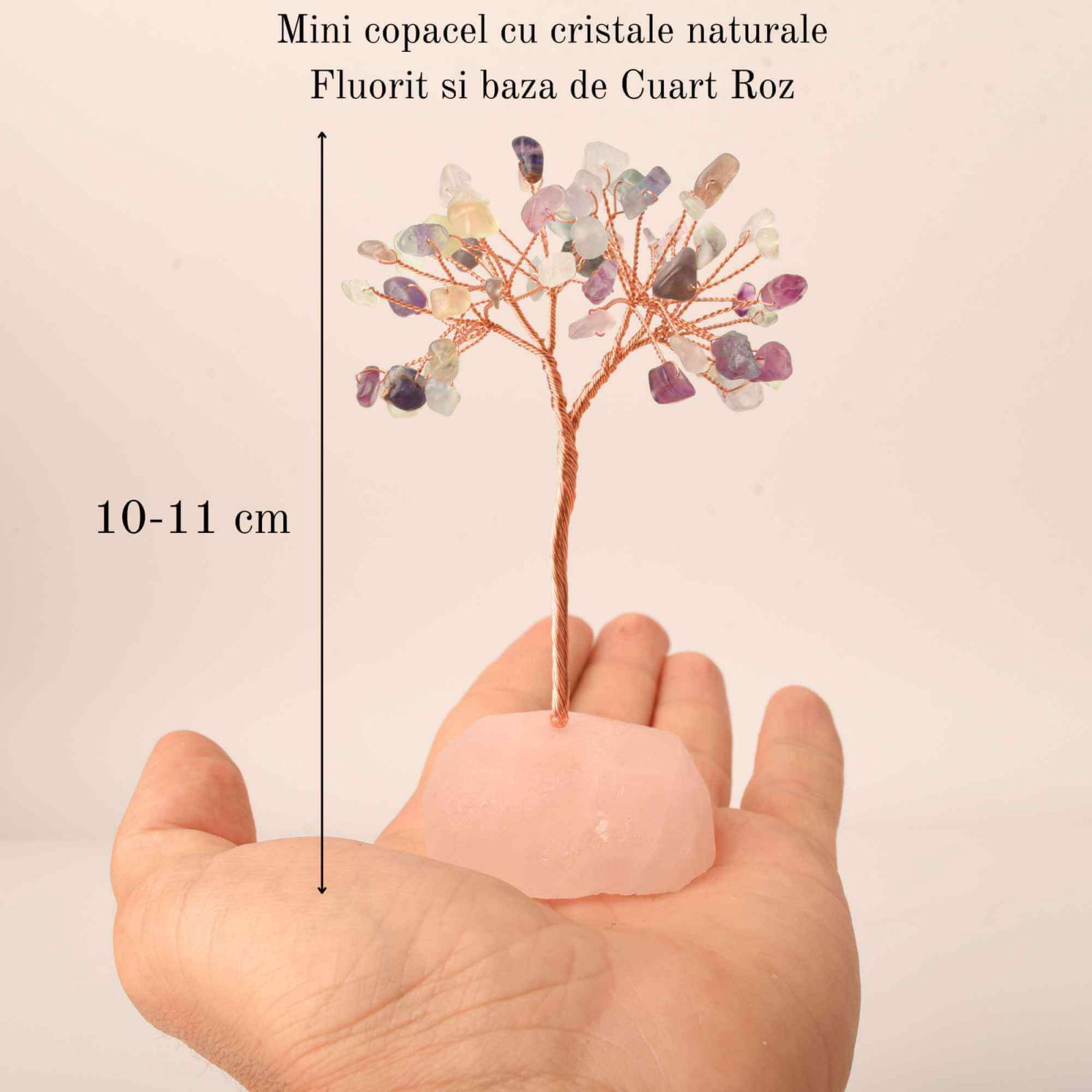 - Acest copacel combina armonios puterea purificatoare a Fluoritului si a Cuartului Roz pentru a crea un spatiu de liniste si echilibru in incaperea in care este plasat.