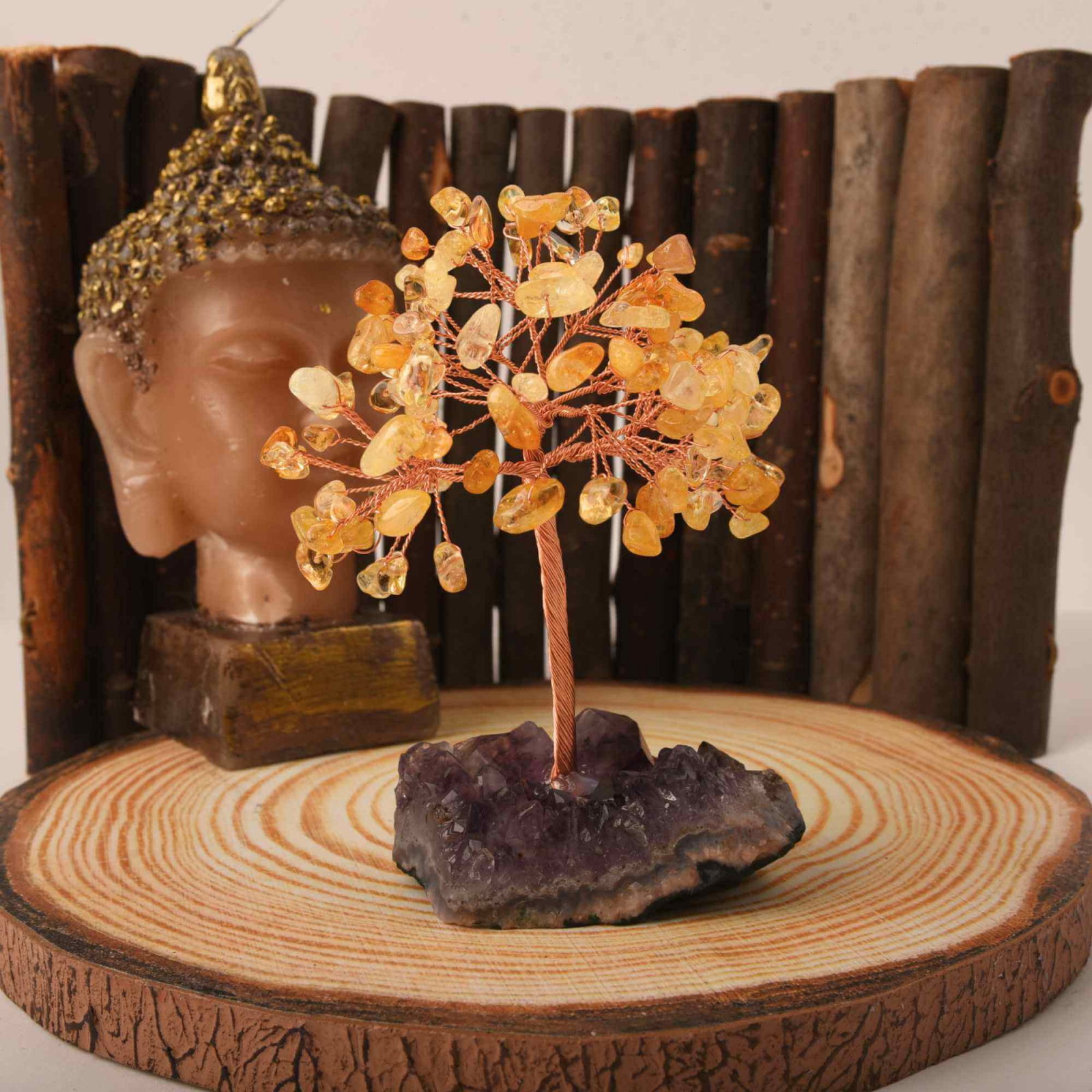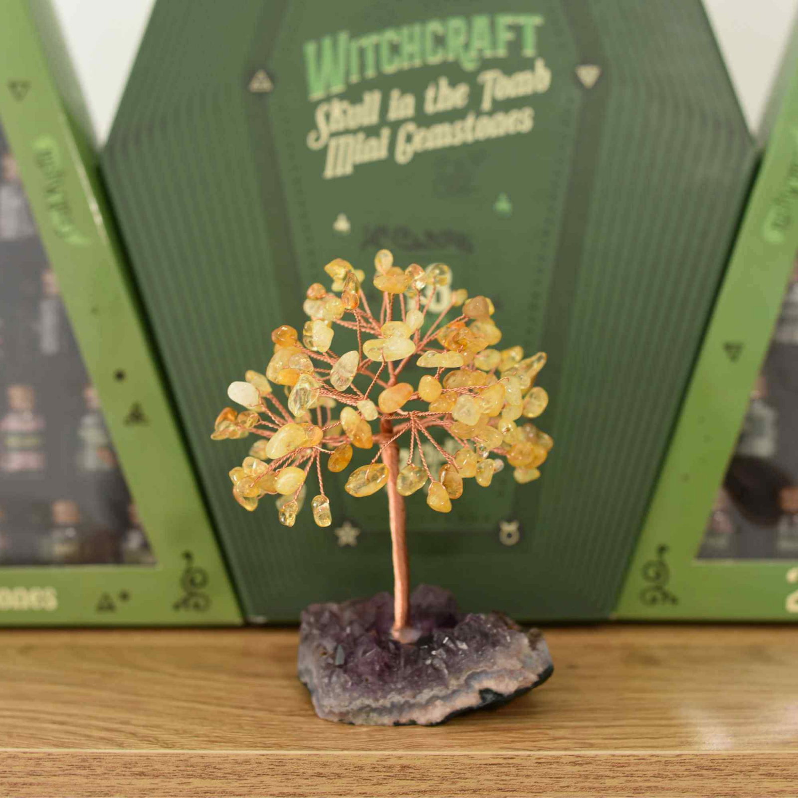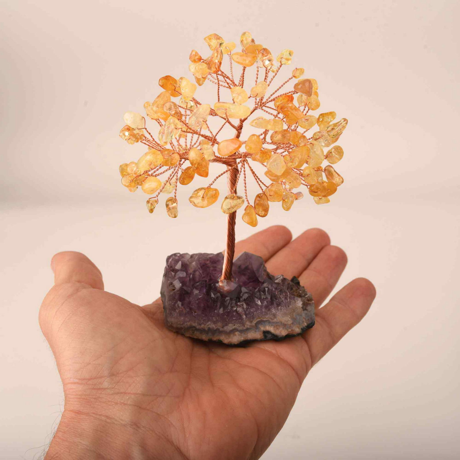Copacel 12-13 cm cu 108 pietre naturale semipretioase Citrin pe baza de Ametist cluster - Arborele vietii pentru noroc, decor interior, exterior