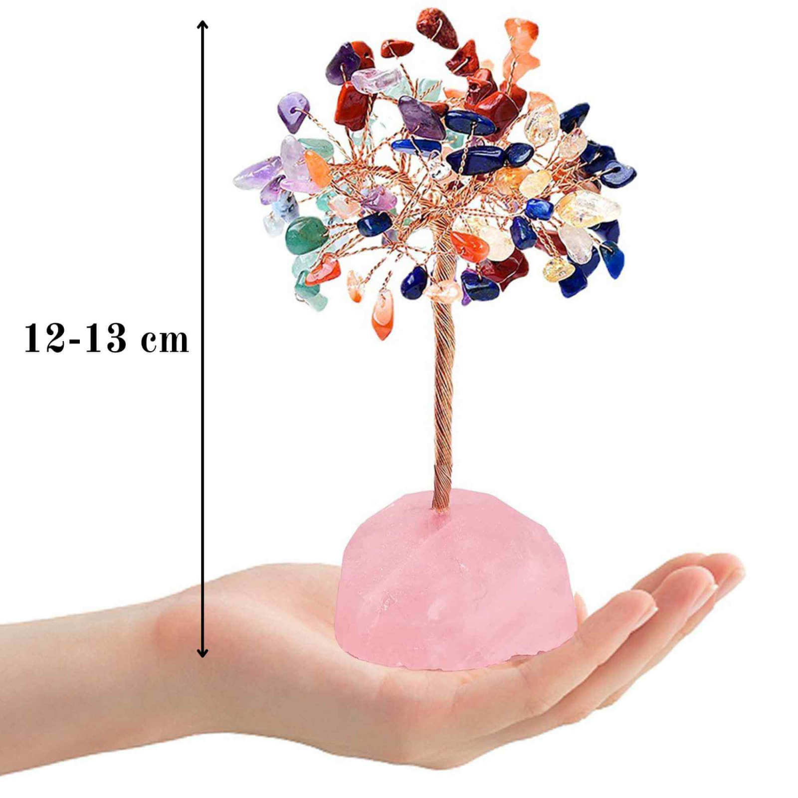 Copacel 12-13 cm din 7 pietre naturale Chakra si baza din cristal natural Cuart Roz pentru noroc si prosperitate