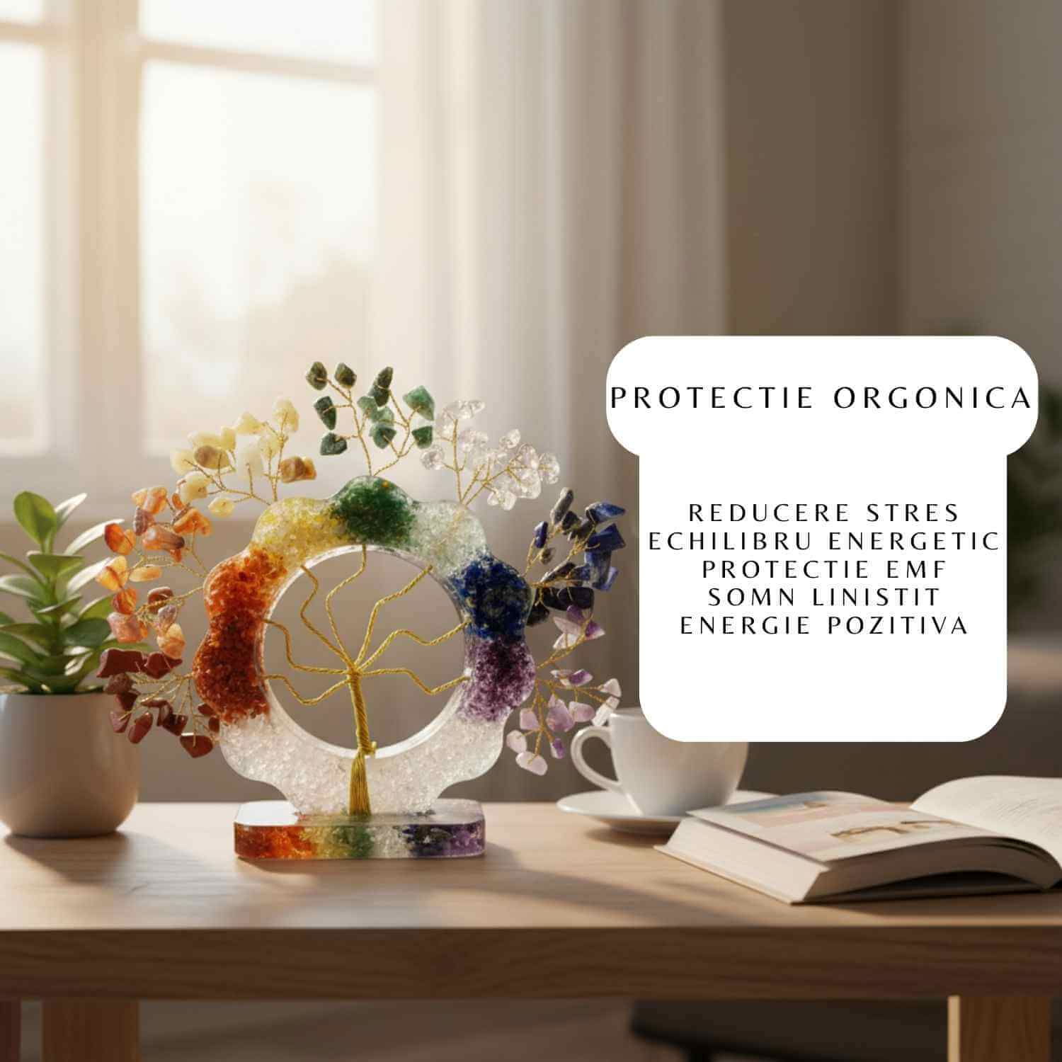 Un obiect decorativ plin de energie și simbolism, acest Copăcel Orgonic în formă de floare, creat manual din rășină, metal și cristale naturale, este conceput pentru a purifica spațiul, a amplifica vibrațiile pozitive și a echilibra cele 7 chakre ale corpului.