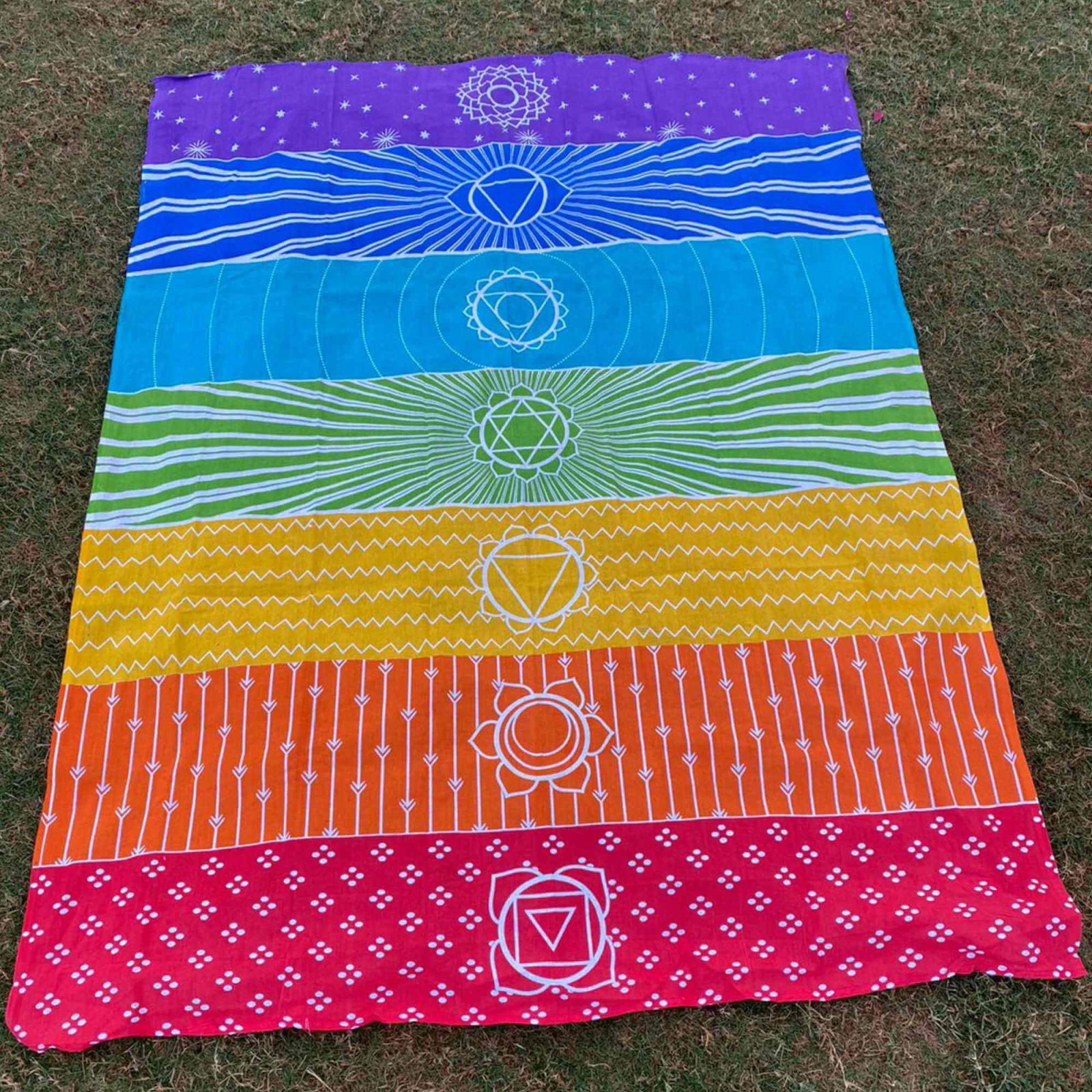 Covor de Yoga si Meditatie 180x130 cm cu Design Bohemian Mandala pentru 7 Chakre - Panza de Perete sau Decor de Interior/Exterior