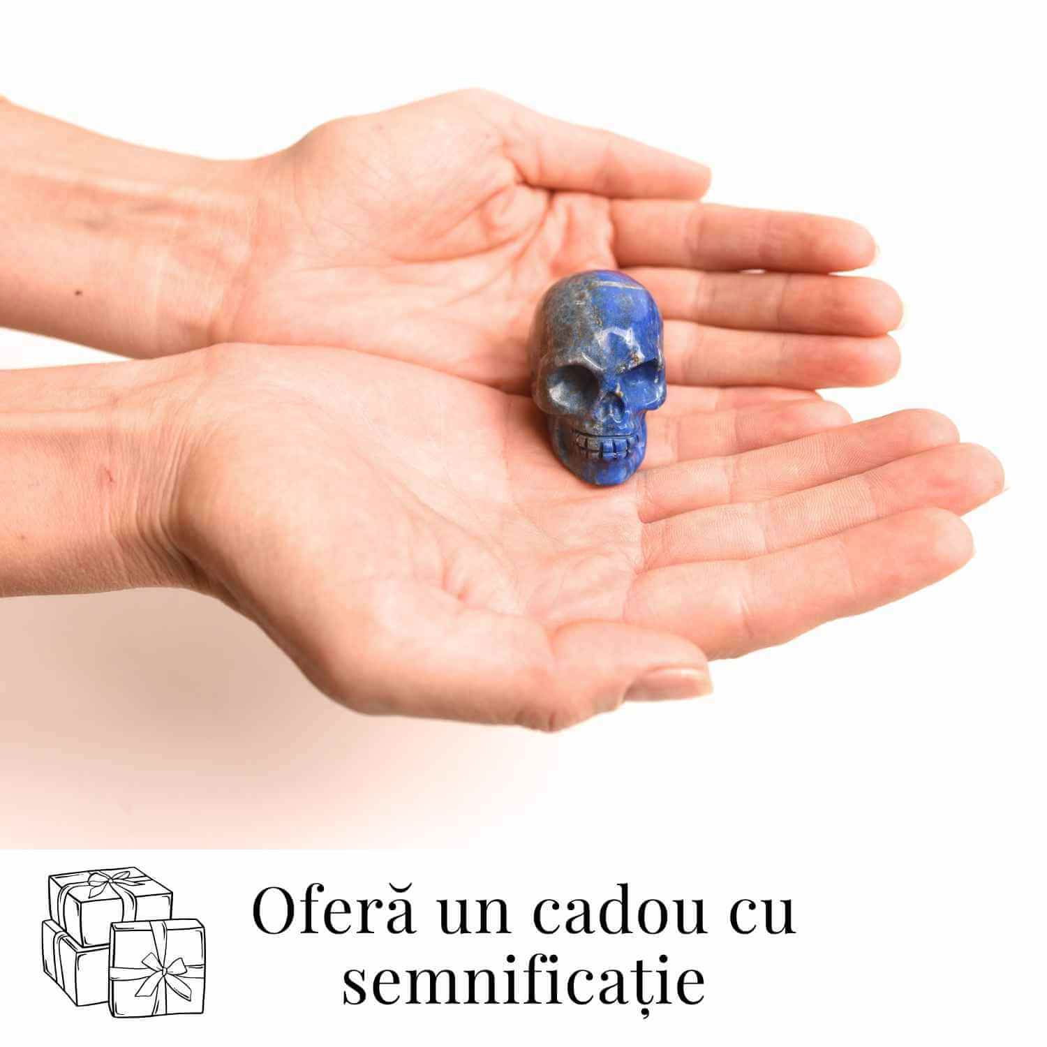 Adaugă acest craniu sculptat manual din Lapis Lazuli în colecția ta sau oferă-l cadou pentru a aduce claritate, înțelepciune și protecție în viața ta sau a celor dragi!