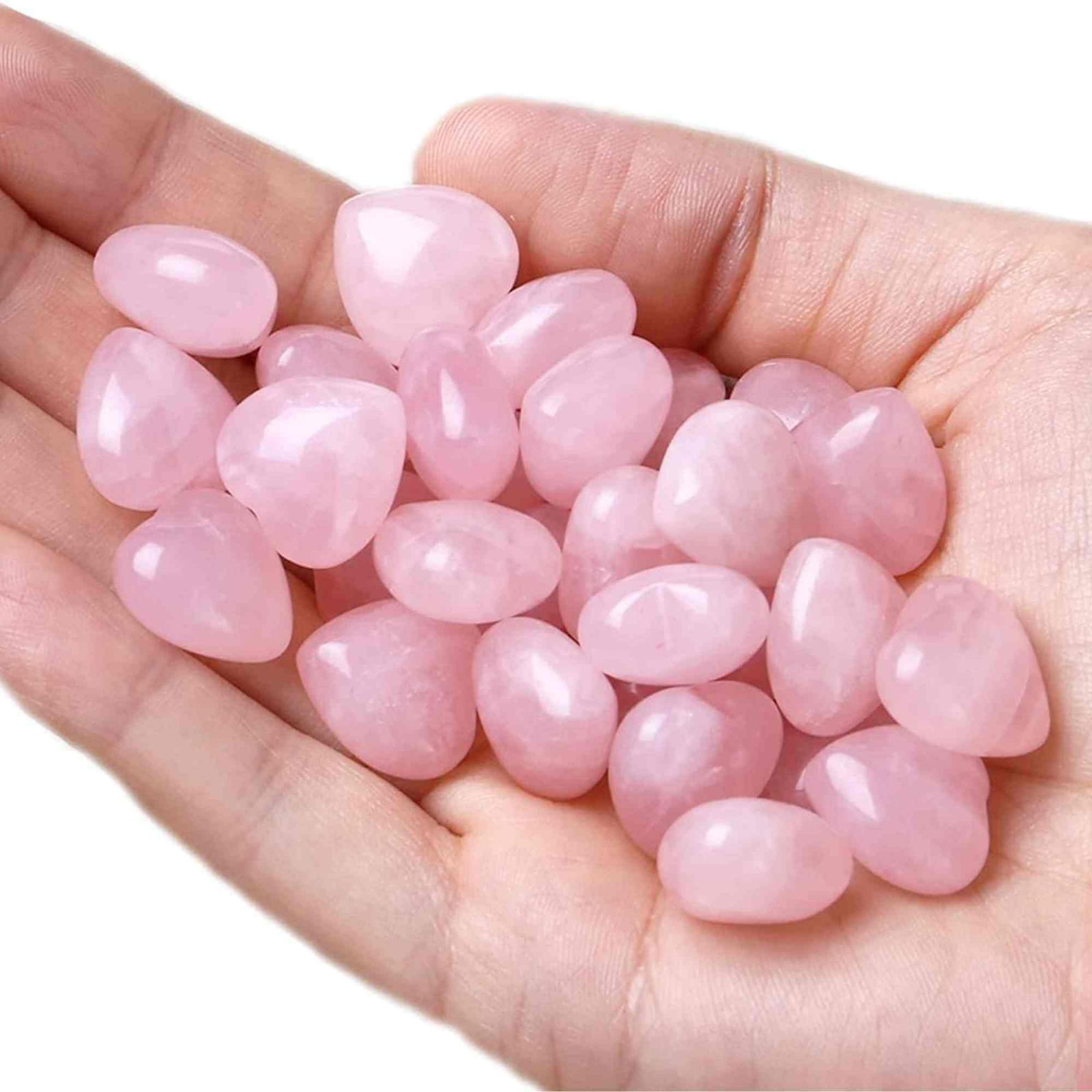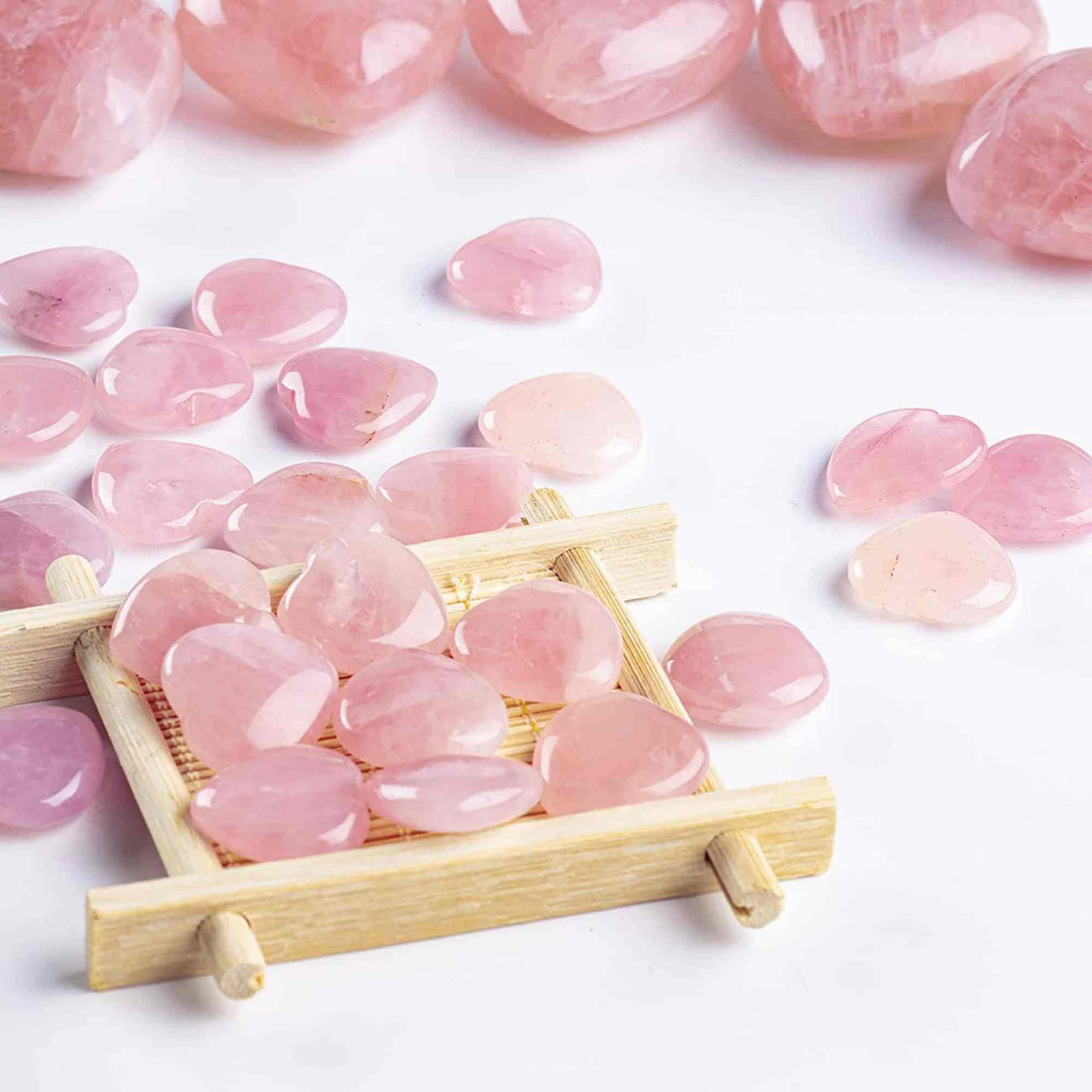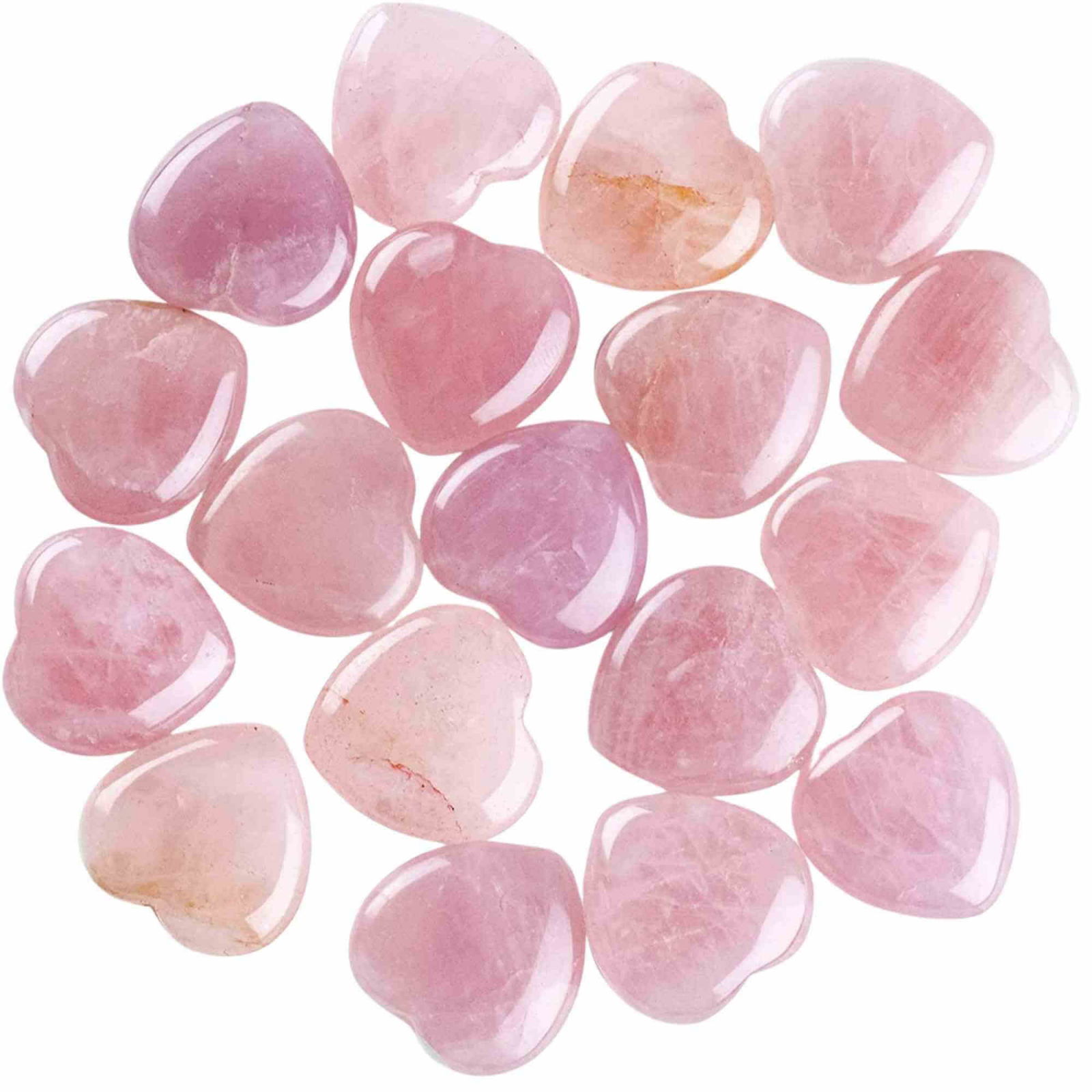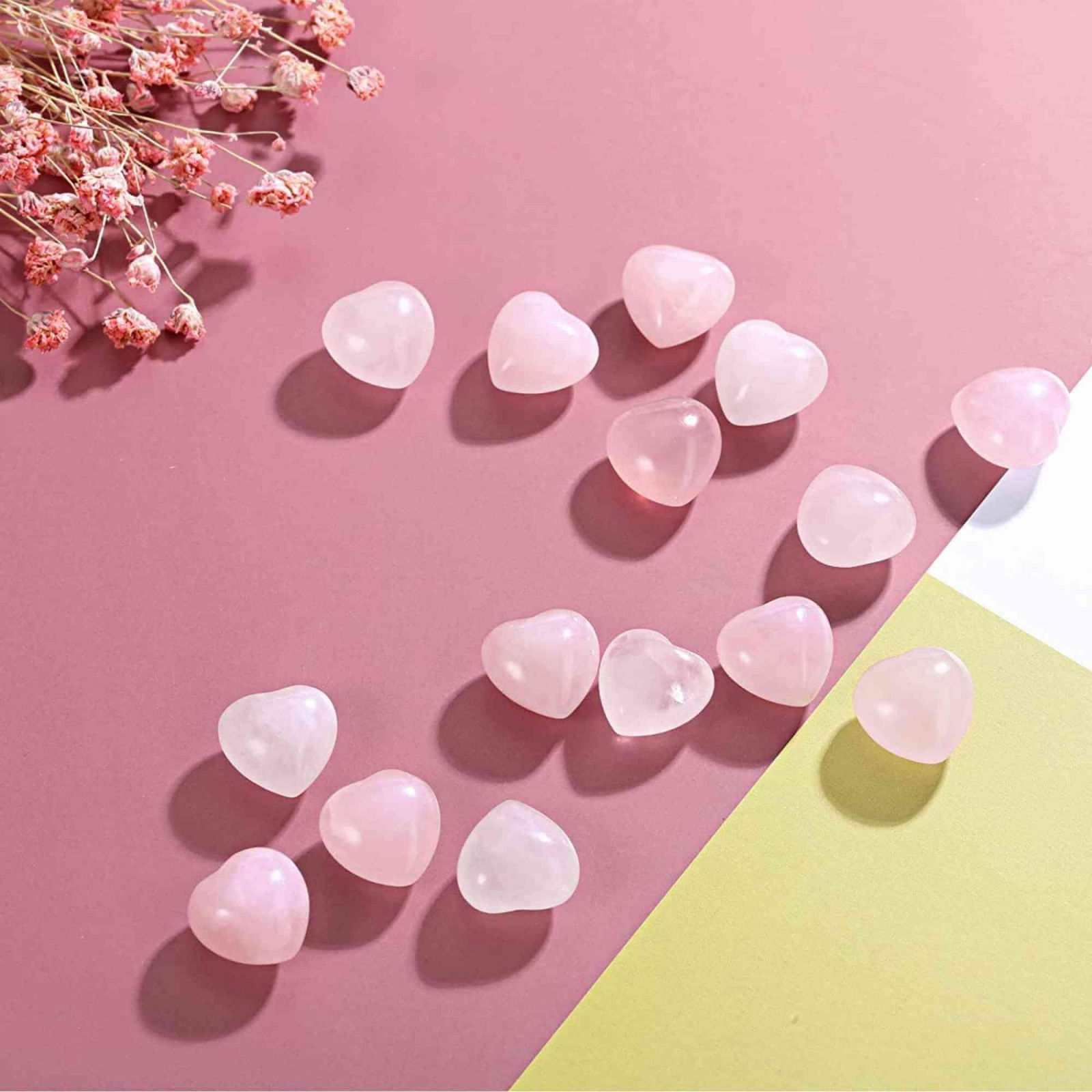 Cristal de cuart trandafir natural in forma de inima - Set de 5 pietre de vindecare, meditatie, echilibrare, decoratiuni pentru casa