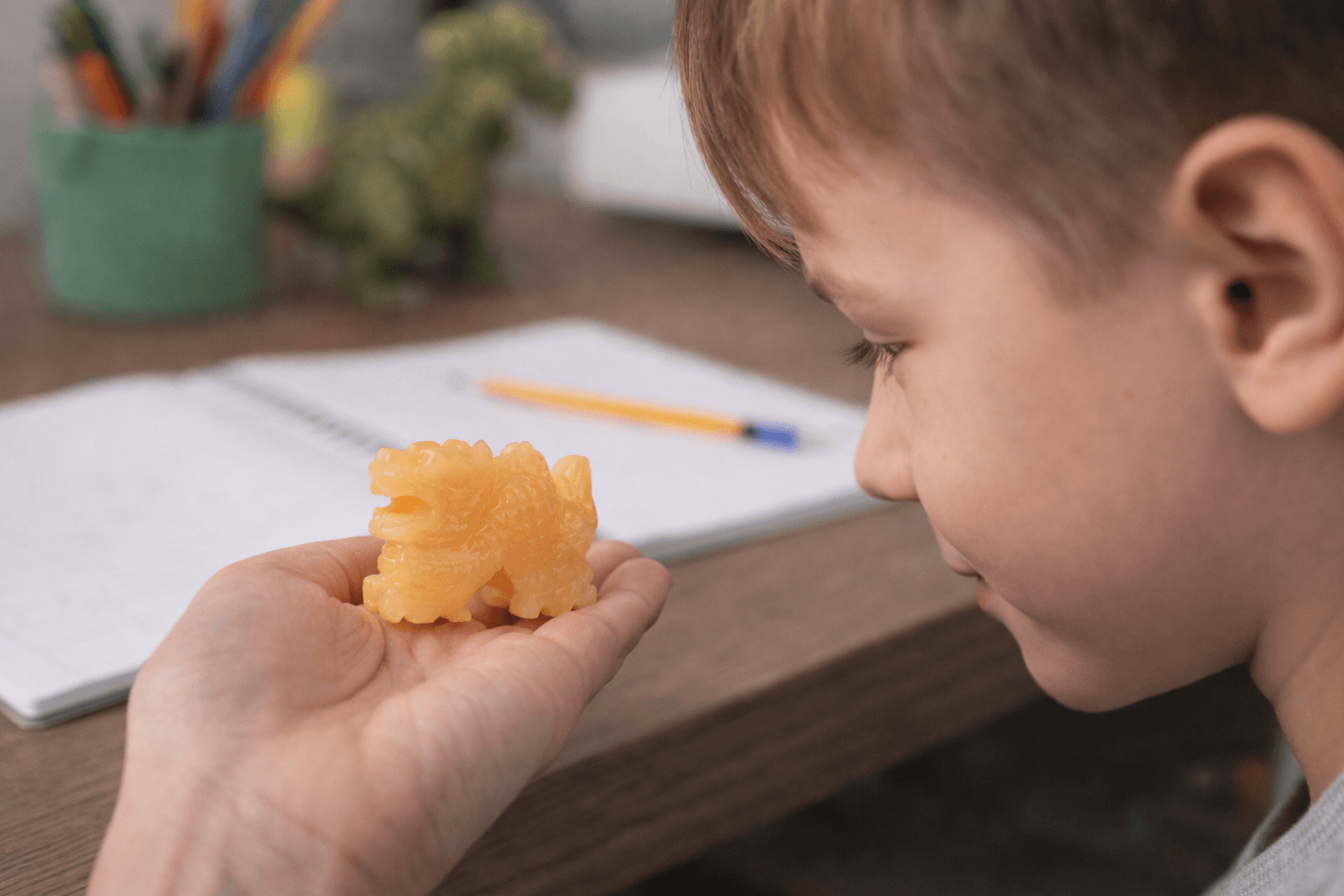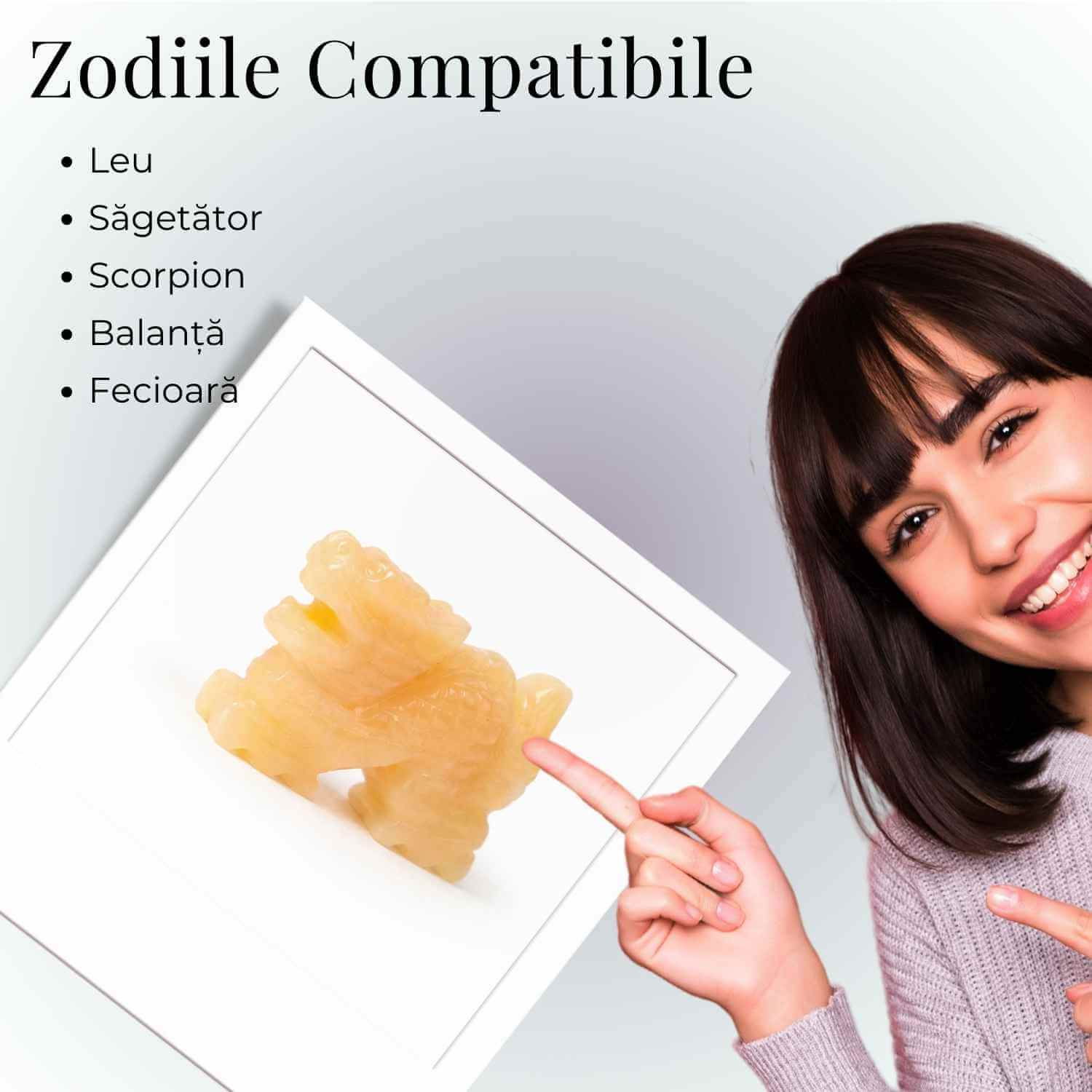 Această figurină Dragon din Topaz galben emană o energie caldă, solară și puternic protectoare. Dragonul este un simbol ancestral al forței interioare, al curajului și al prosperității, fiind considerat un gardian energetic ce alungă energiile negative și susține succesul personal.