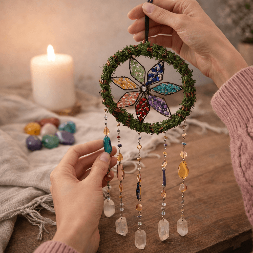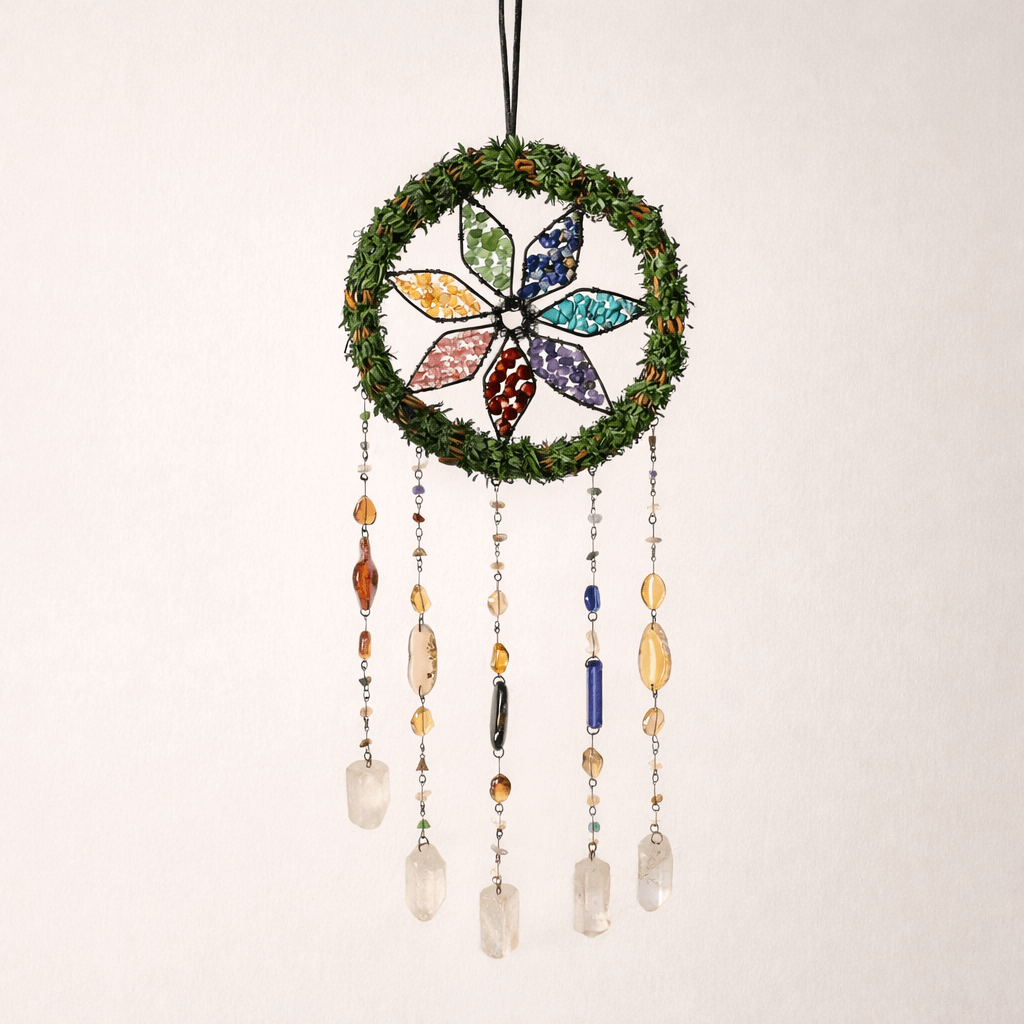 Acest dreamcatcher cu cele 7 chakre si cuart de stanca este un obiect spiritual decorativ creat pentru a sustine o atmosfera de calm, echilibru si conectare interioara. Prezenta sa discreta transforma spatiul intr-un loc mai asezat, potrivit pentru reflectie, relaxare si ritual personal.