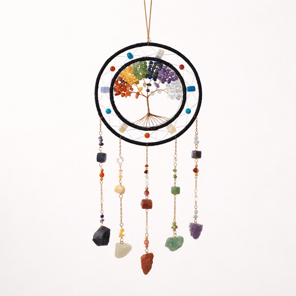 Acest dreamcatcher cu cele 7 chakre este un obiect decorativ cu sens profund, creat pentru a aduce o stare de echilibru, liniște și ordine subtilă în spațiul tău. Prezența pietrelor naturale și a simbolului Arborelui Vieții transformă orice încăpere într-un loc mai calm, mai centrat și mai primitor.