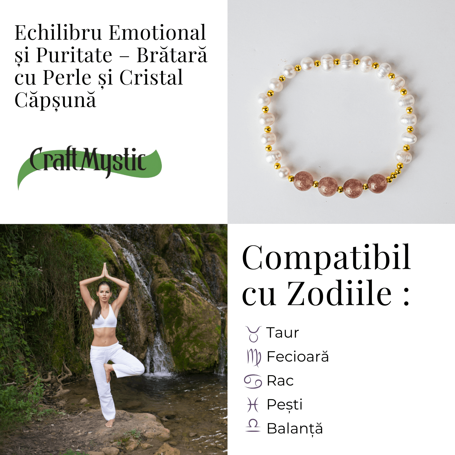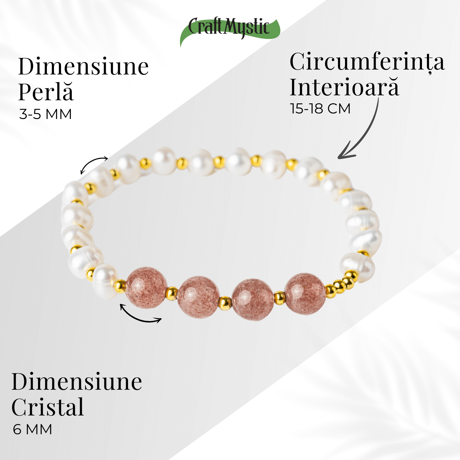Descoperă echilibrul emoțional și puritatea absolută cu o brățară unică – simte puterea perlelor și a cristalului căpșună!