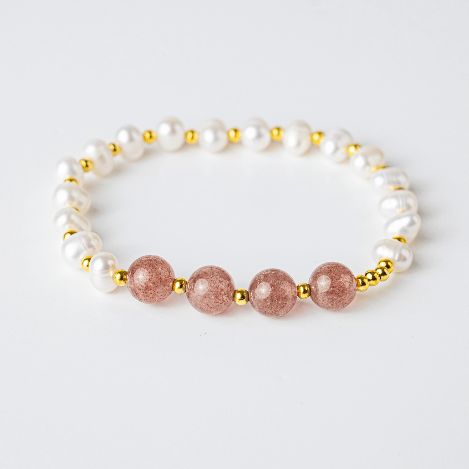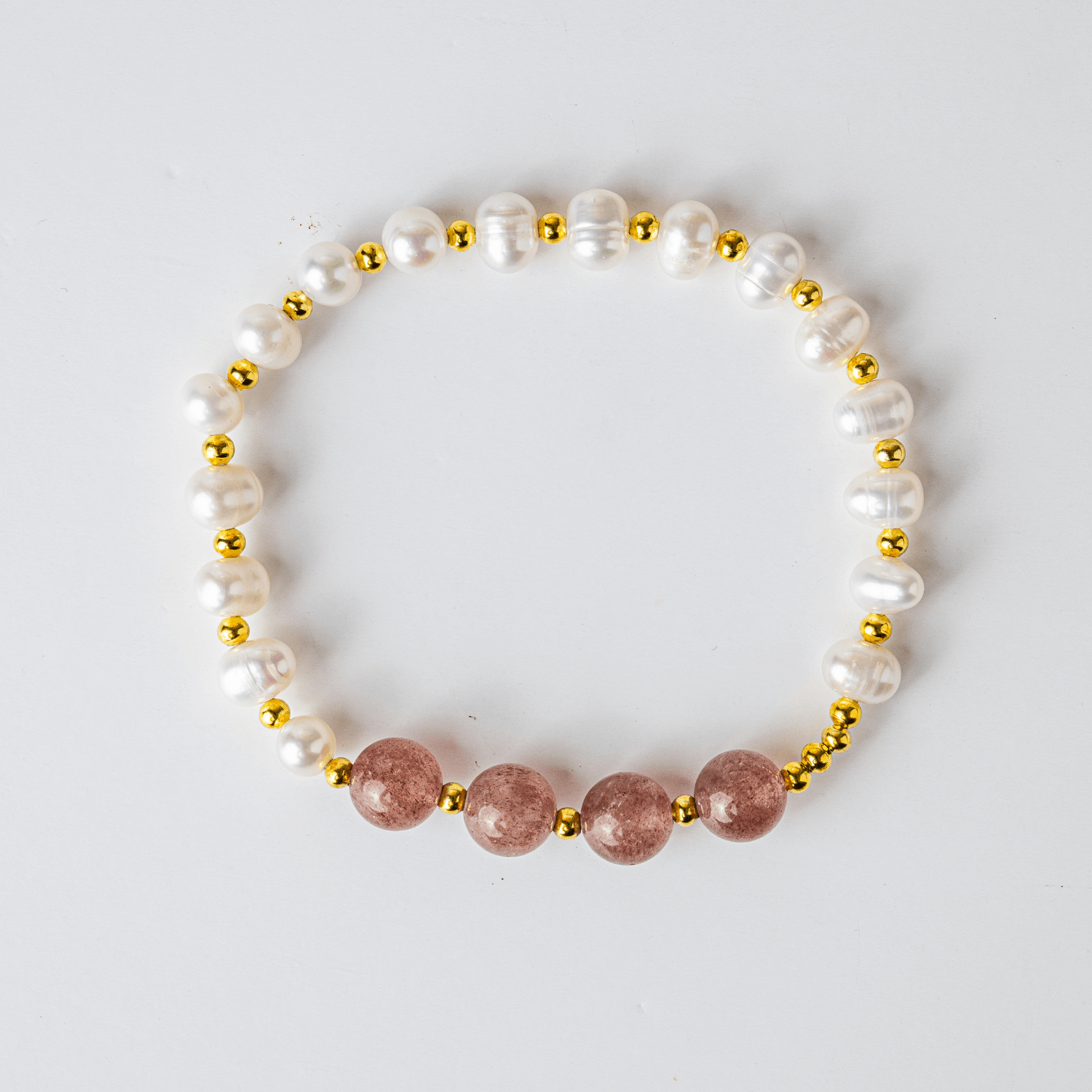 Echilibru Emoțional și Puritate – Perlele simbolizează calmul și armonia, iar cristalul căpșună aduce o energie curată și purificatoare. Împreună, aceste pietre îți oferă o combinație perfectă pentru a găsi echilibrul în viața ta, aducând puritate și vindecare emoțională.