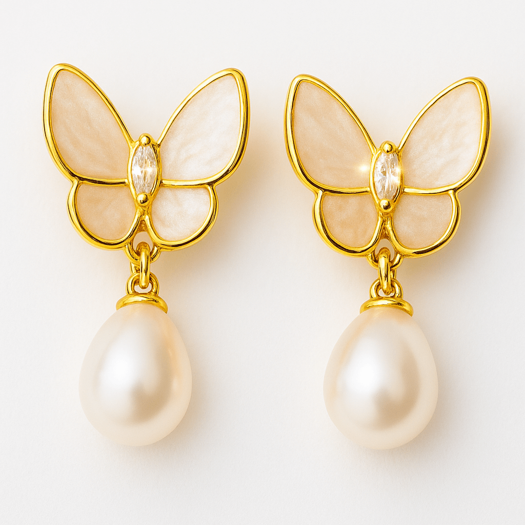 Material: cupru placat auriu + perla naturala sculptata