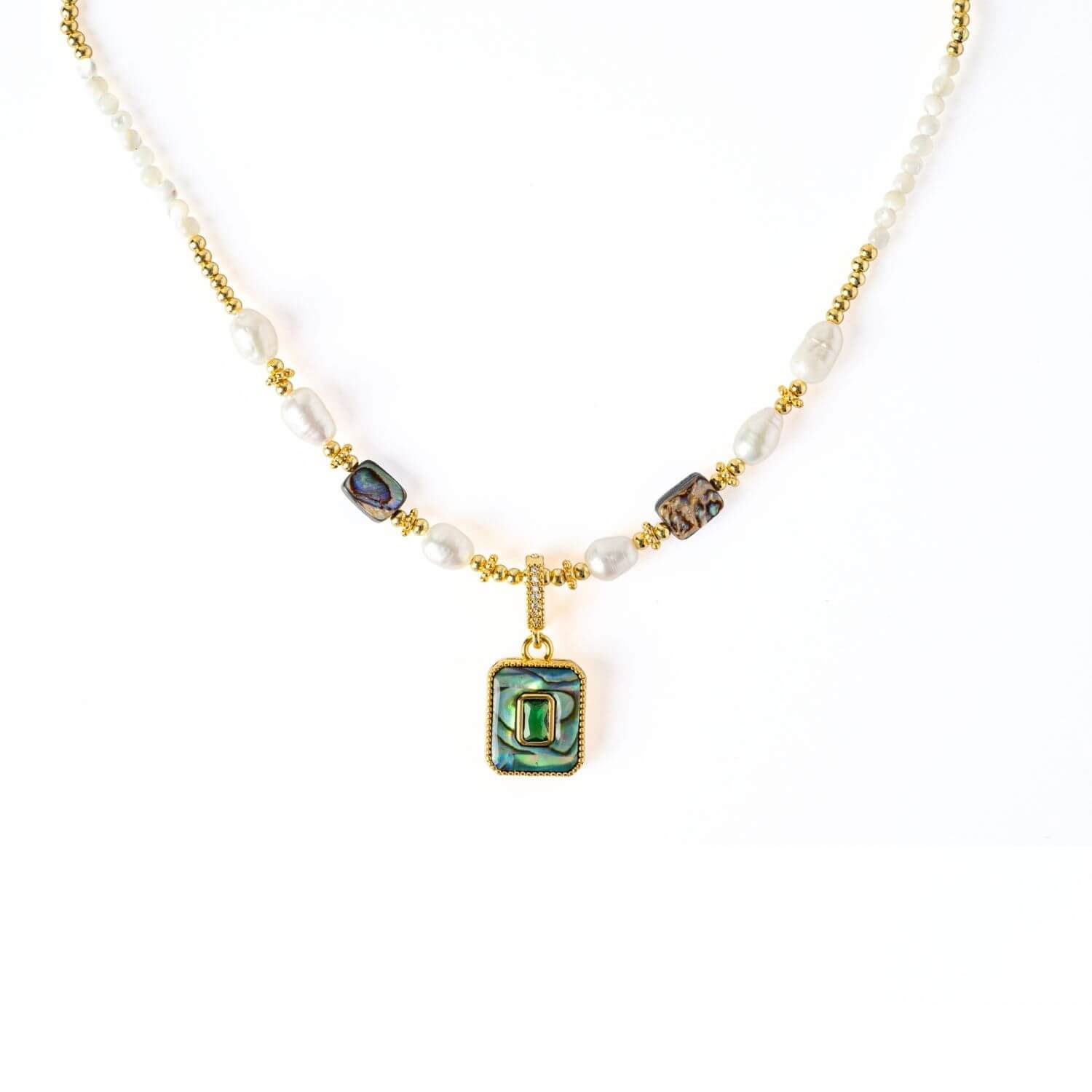 Poartă Eleganta si Armonie – Colier cu Perle si Scoica Abalone Naturale și lasă frumusețea oceanului să-ți aducă echilibru și grație în fiecare zi.