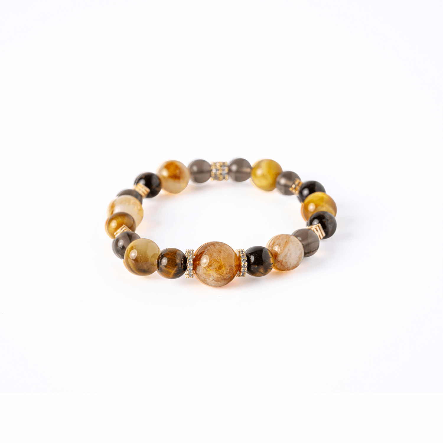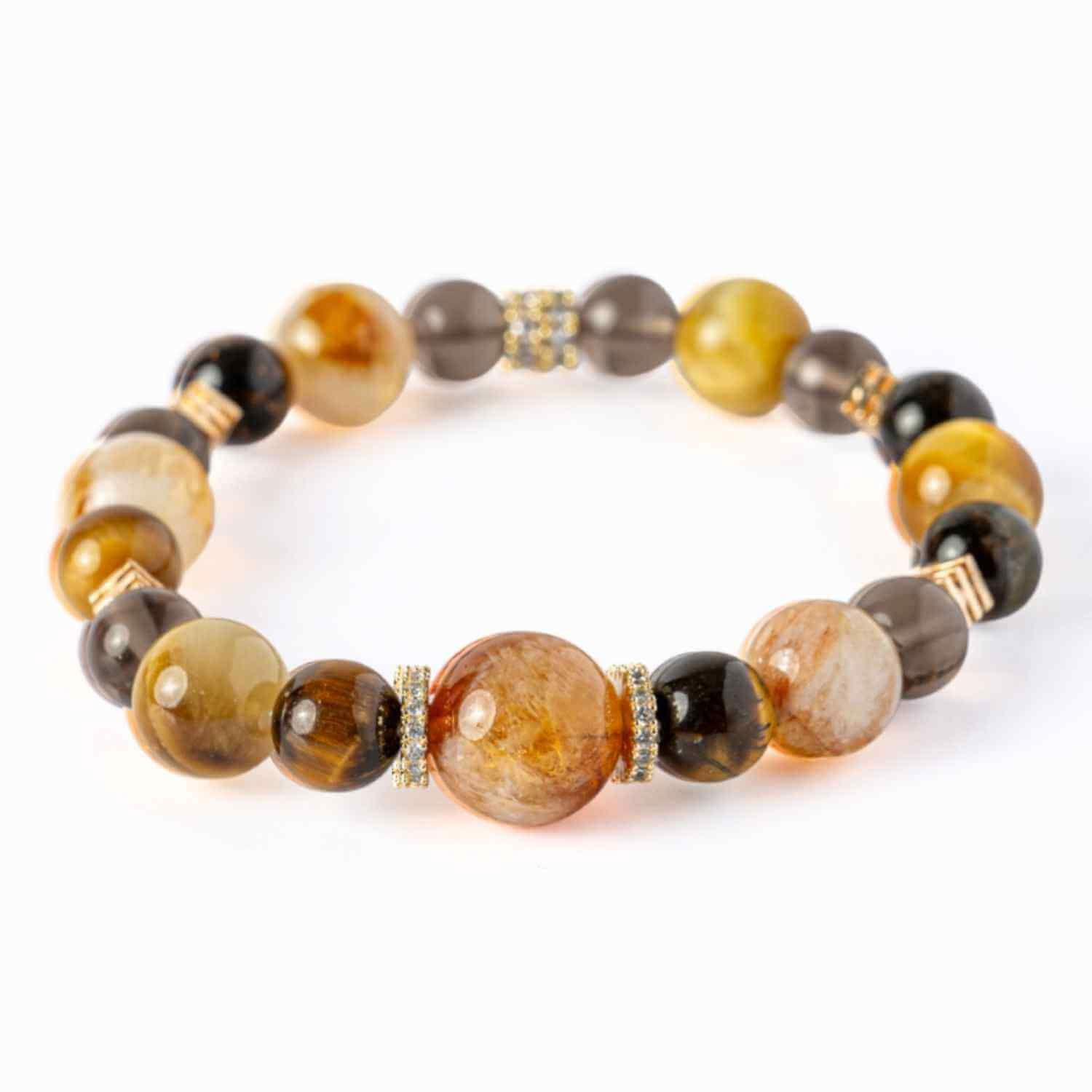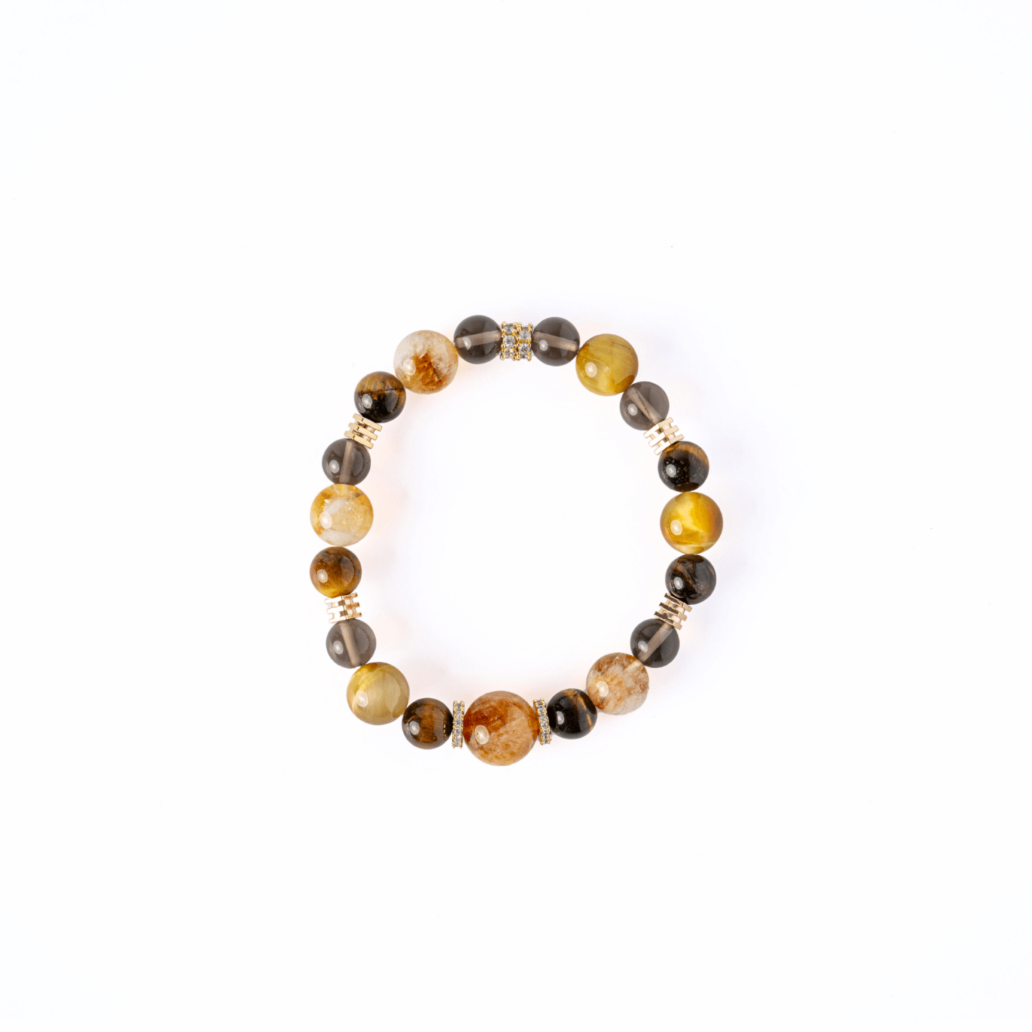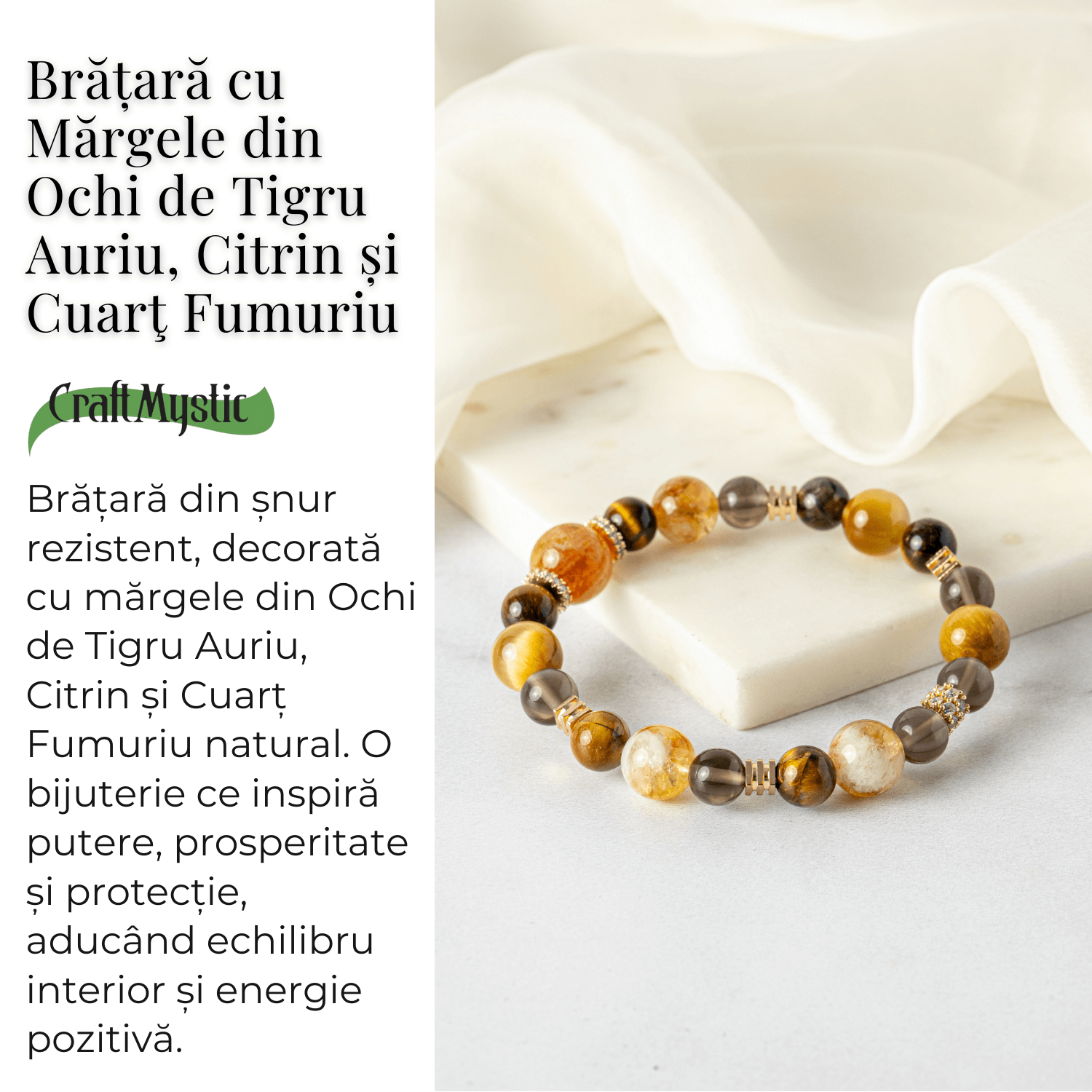 Dimensiuni pietre: Cuart Fumuriu 8 mm, Ochi de Tigru Auriu 8 mm, Citrin 10 mm