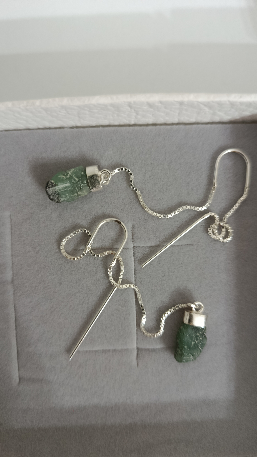 Acești cercei transmit rafinament și naturalețe. Smaraldul brut, neșlefuit complet, îți aduce autenticitate, iar energia lui vibrantă rezonează cu chakra inimii, atrăgând armonie și echilibru.