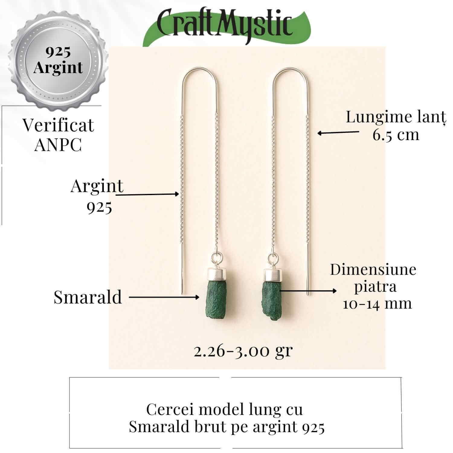 Acești cercei transmit rafinament și naturalețe. Smaraldul brut, neșlefuit complet, îți aduce autenticitate, iar energia lui vibrantă rezonează cu chakra inimii, atrăgând armonie și echilibru.