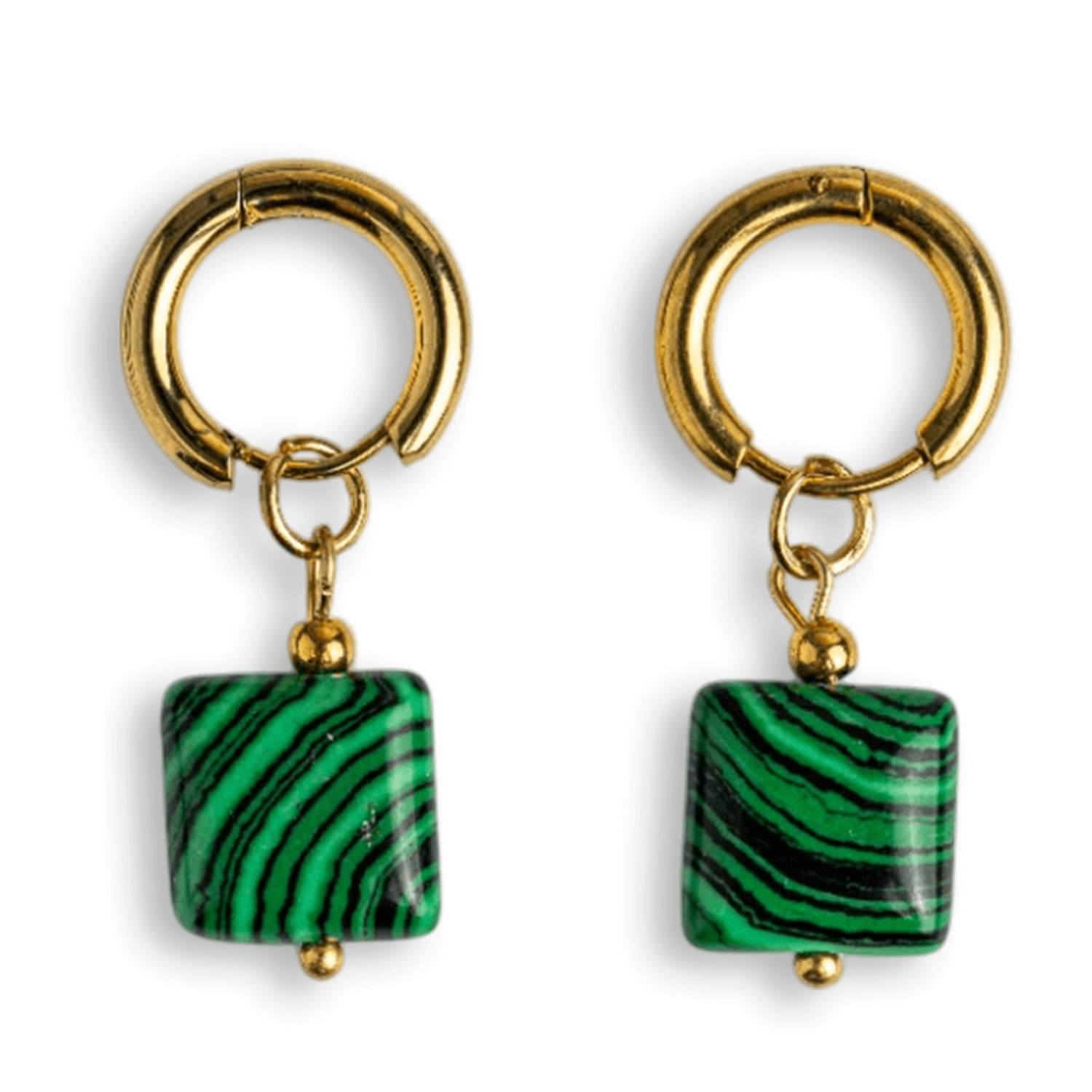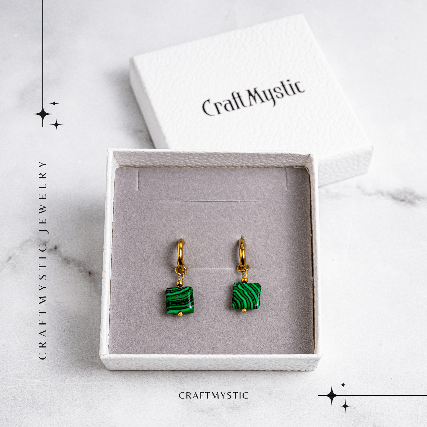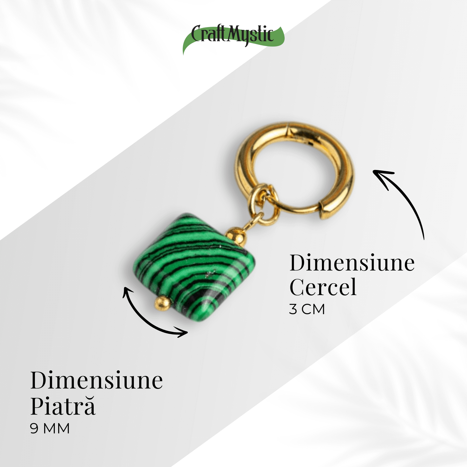 Malachitul sintetic este recunoscut pentru proprietățile sale de curățare energetică, protecție și revitalizare. Acesti cercei simbolizează o renaștere a energiei interioare, susținând tranzițiile pozitive în viață și redând încrederea în sine.