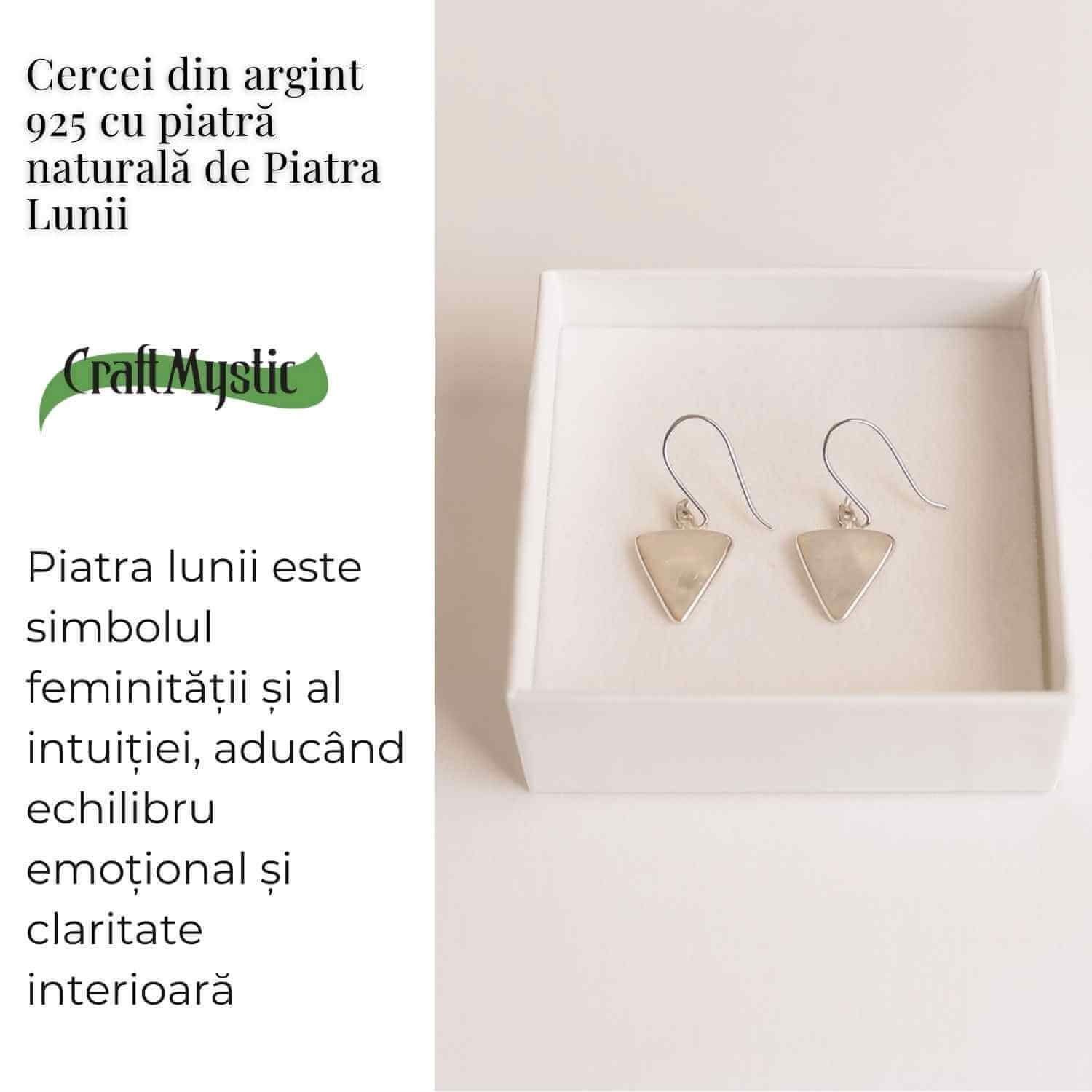 Poarta acesti cercei cu Piatra Lunii in forma de triunghi si lasa protectia lor subtila sa te insoteasca, deschizandu-ti calea catre intuitie si ascensiune spirituala.