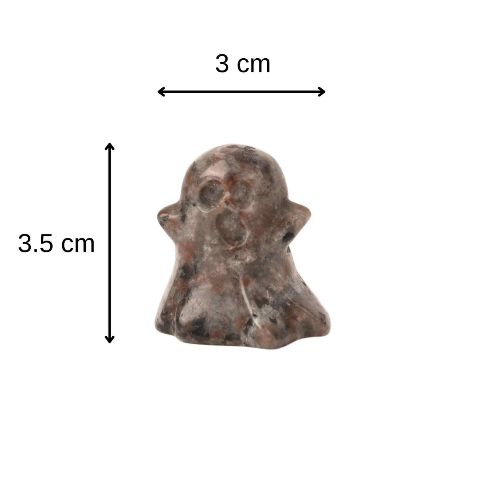 • Dimensiune statuie fantoma : 3.5 cm x 3 cm cu saculet de satin inclus. Toate dimensiunile sunt masurate manual, exista erori de 0,5-1 cm. In plus, datorita naturii pietrelor semipretioase, sculpturile pot varia usor ca dimensiune, culoare, greutate.