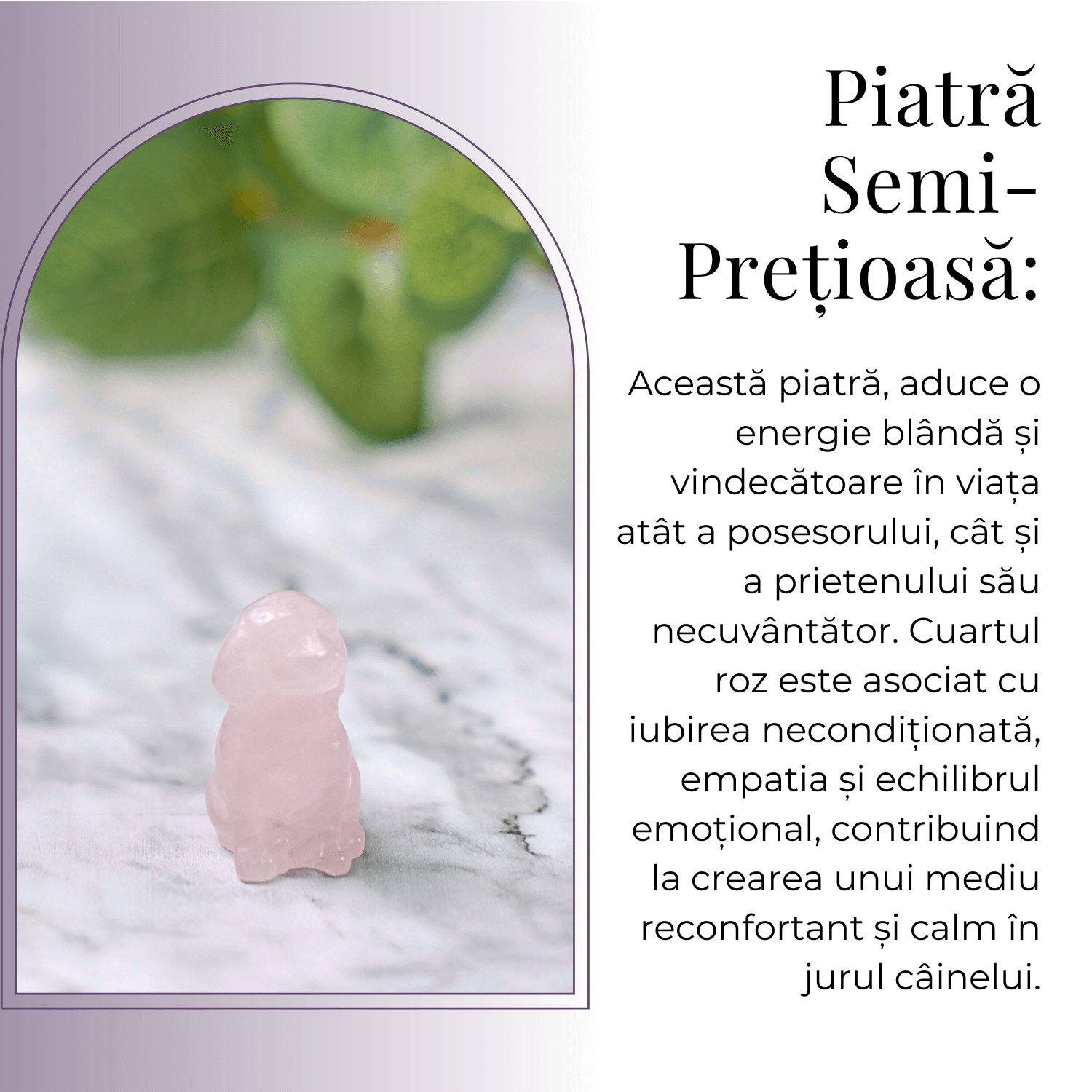 Descriere: Adaugă o notă de căldură și iubire în casa ta cu această adorabilă figurină de cățeluș, sculptată manual din cuart roz.