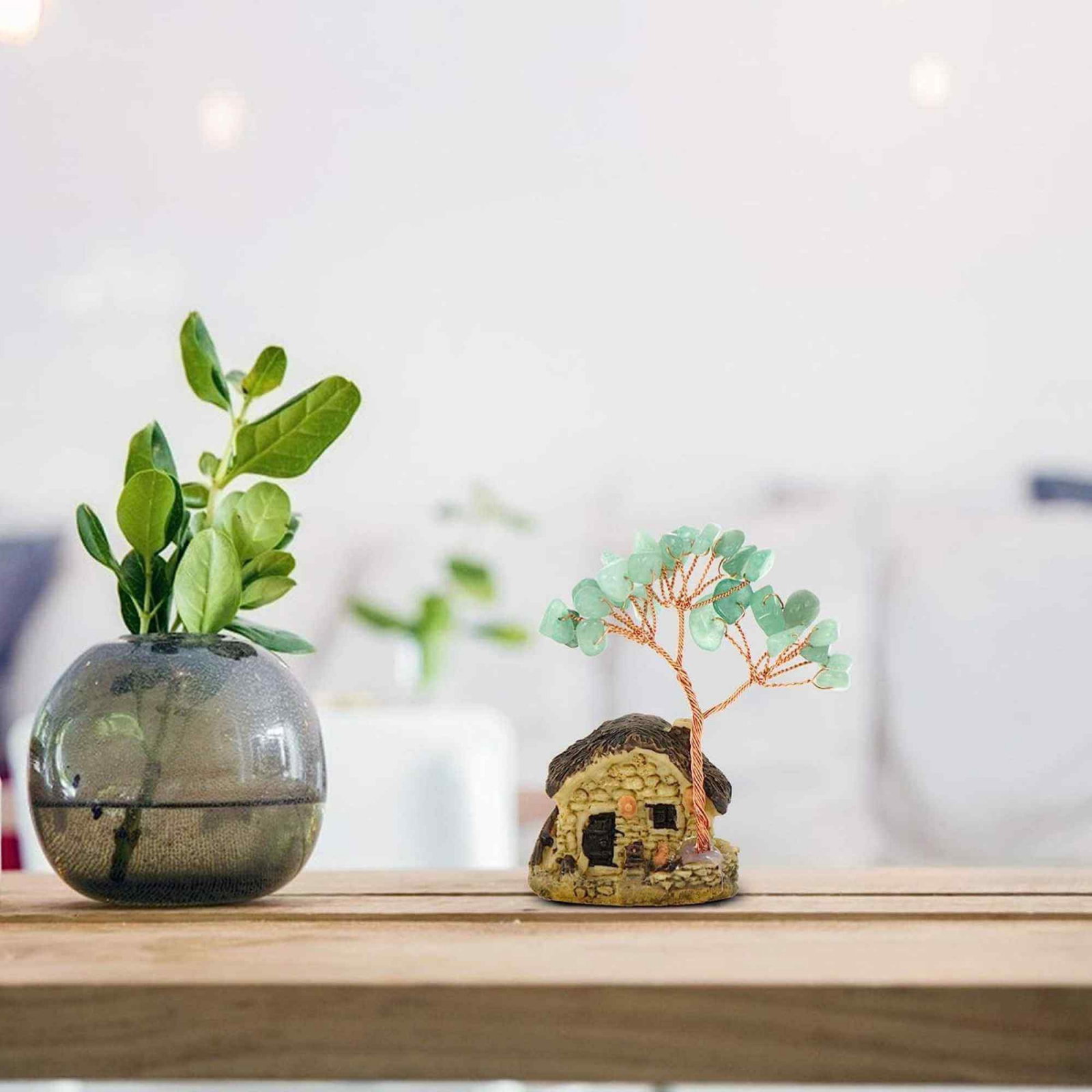 Transforma-ti spatiul intr-o oaza de liniste si prosperitate cu ajutorul figurinei casutei cu ramuri din cristale naturale Aventurin Verde! Aceasta decoratiune uimitoare aduce echilibru si bunastare in casa ta, birou sau chiar in acvariul tau. Fiecare ramura din aceasta figurina este impodobita cu cristale de aventurin verde, care aduc beneficii uimitoare pentru minte, corp si suflet;