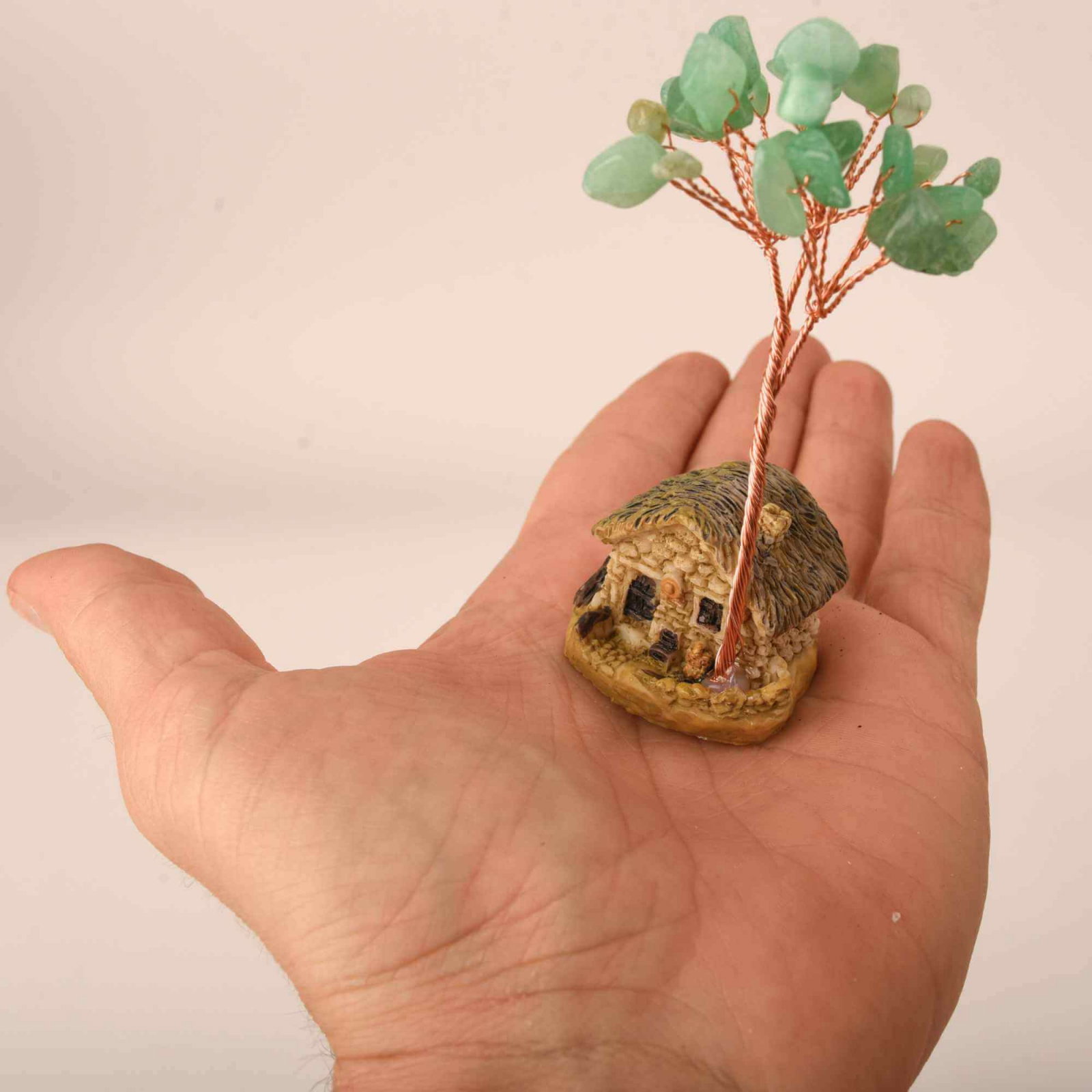 Figurina casuta cu ramuri din cristale naturale Aventurin Verde - Decoratiune interior sau exterior, pentru casa, birou, acvariu