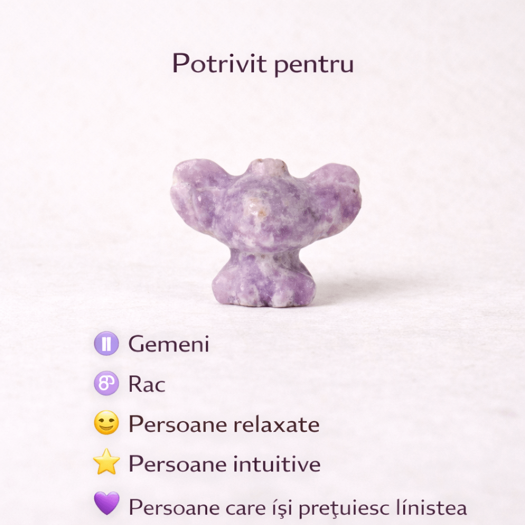 Figurină din lepidolit natural, creată pentru momente de calm și reflecție.